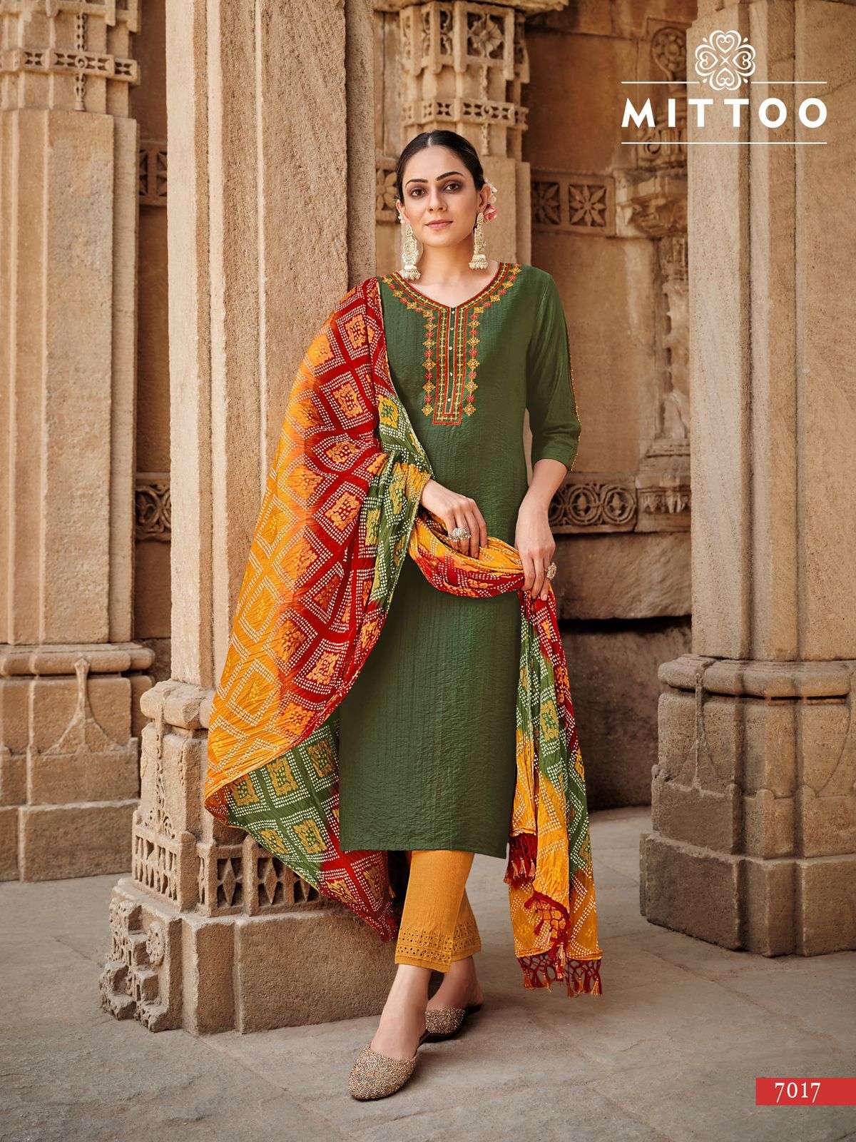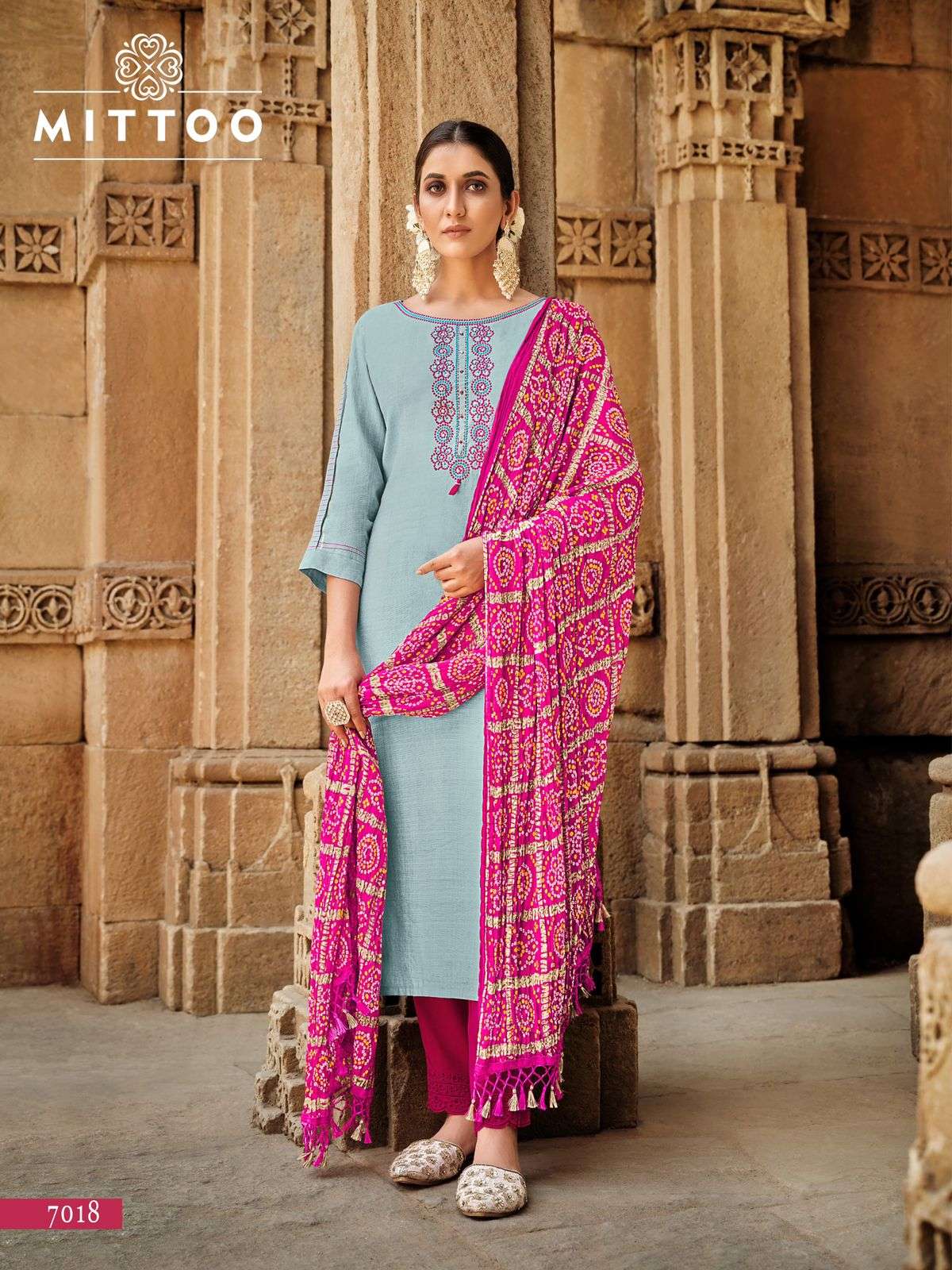 Brand Name : MITTOO Catalog : Bansri No of Design : 6 Fabric Details Pant : Cotton Slub Lycra Dupatta : Bandhani Size : S(36), M(38), L(40), XL(42), XXL(44), 3XL(46) Rate : 1150 / Pic + GST Dispatch with in 3-4 days