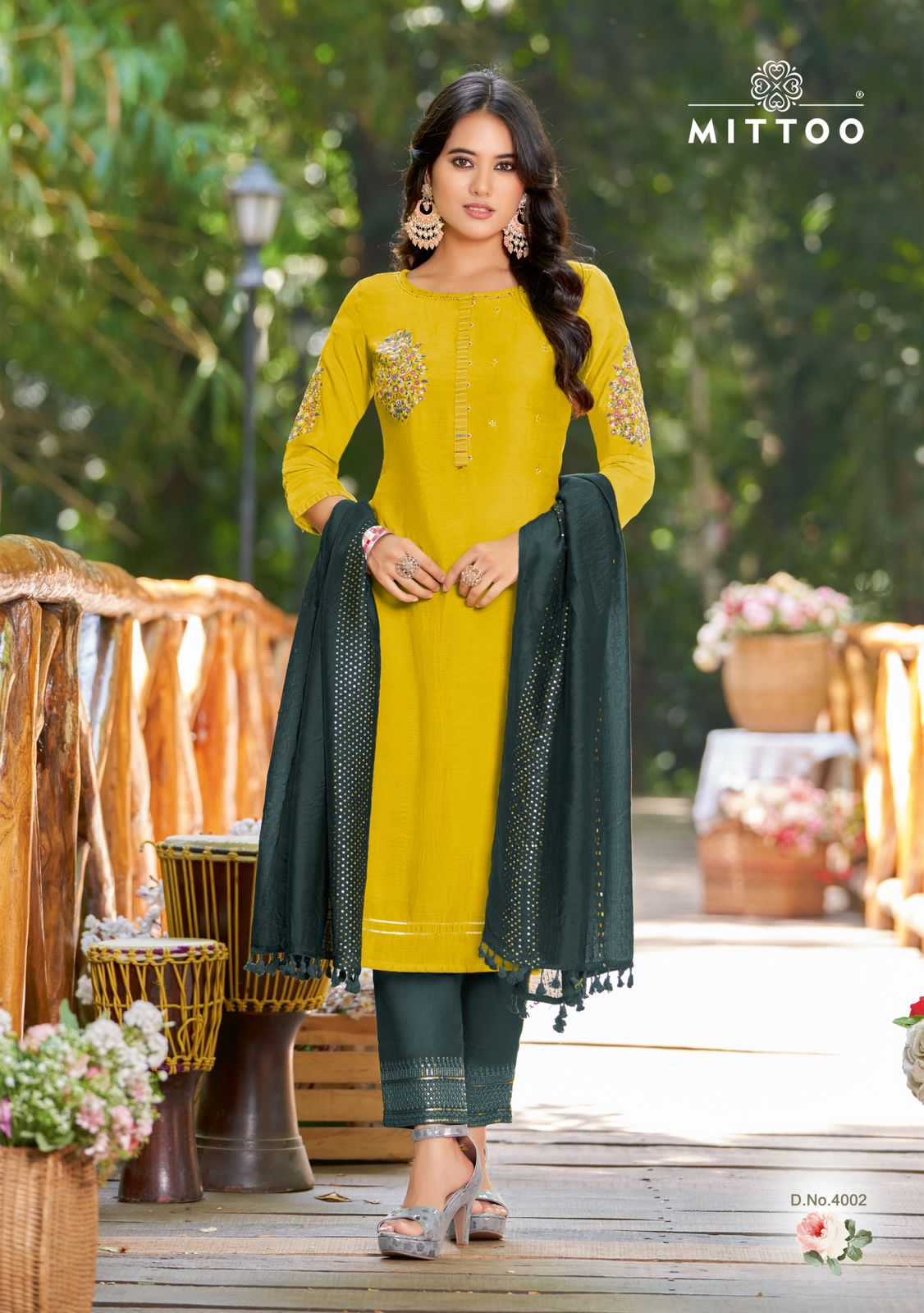 mittoo present rishta amazing fancy straight kurti with pant and chanderi dupatta catalog