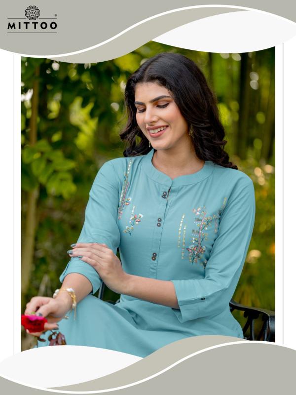 mittoo presents exotica vol 1 rayon readymade casual long kurtis supplier