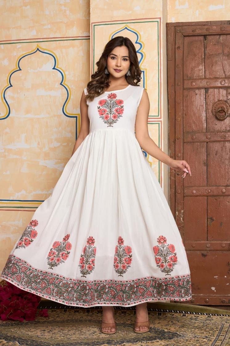BOOK CATALOGUE MODERN COTTON FLAIR GOWN ON KRISHNA CREATION. CALL ON +91-8866778727.