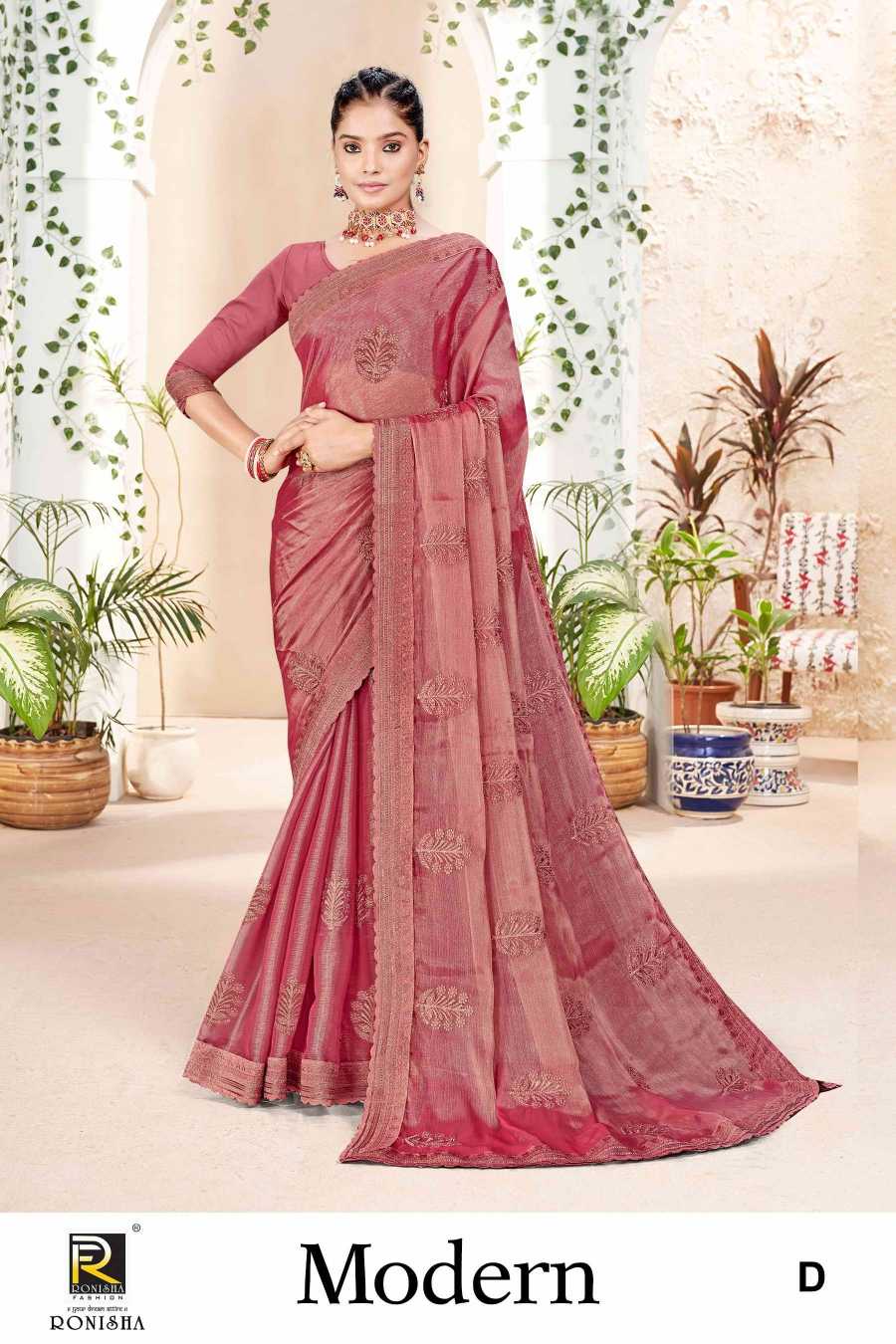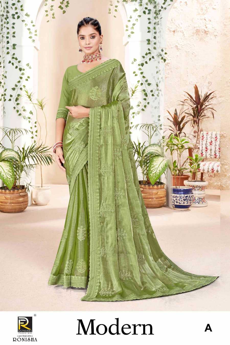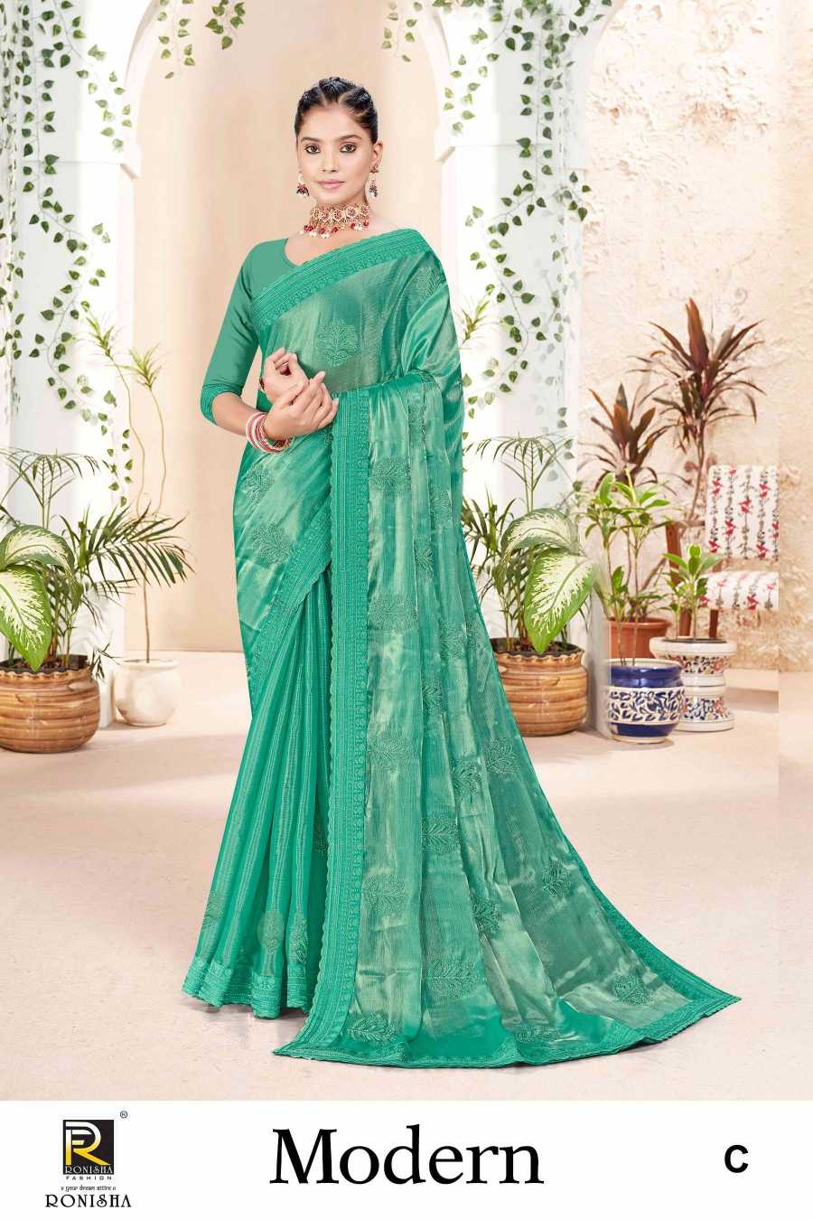 MODERN BY RANJNA SAREE FANCY FABRICS SIROSKI WORK FANCY EMBROIDERY BORDER SUPER HIT COLLECTION SAREES