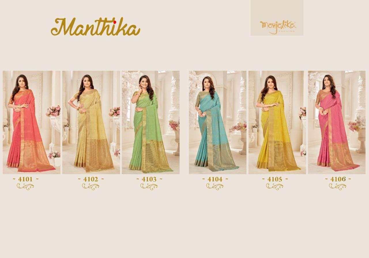 Brand - Monjolika . Series - 4101 to 4106.       Monjolika Fashion        New Catalog Launch - Manthika        FABRIC - Cotton Silk       PRICE - 995/- + 5% GST           Today DISPATCH |