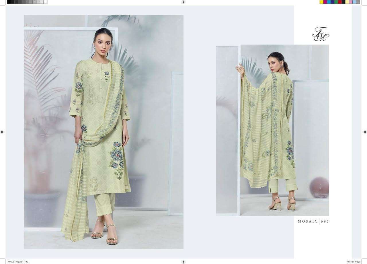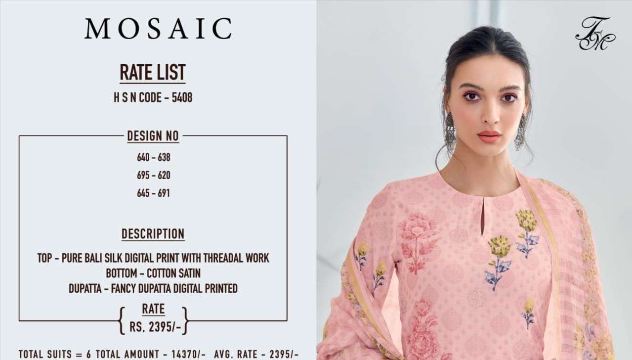 T&M MOSAIC TOP- PURE BALI SILK PRINT WITH THREADAL WORK BOTTOM-COTTON SATIN DUPATTA-FANCY DUPATTA DIGITAL PRINT RATE-2395/- TOTAL SUITS-6 Set to set |