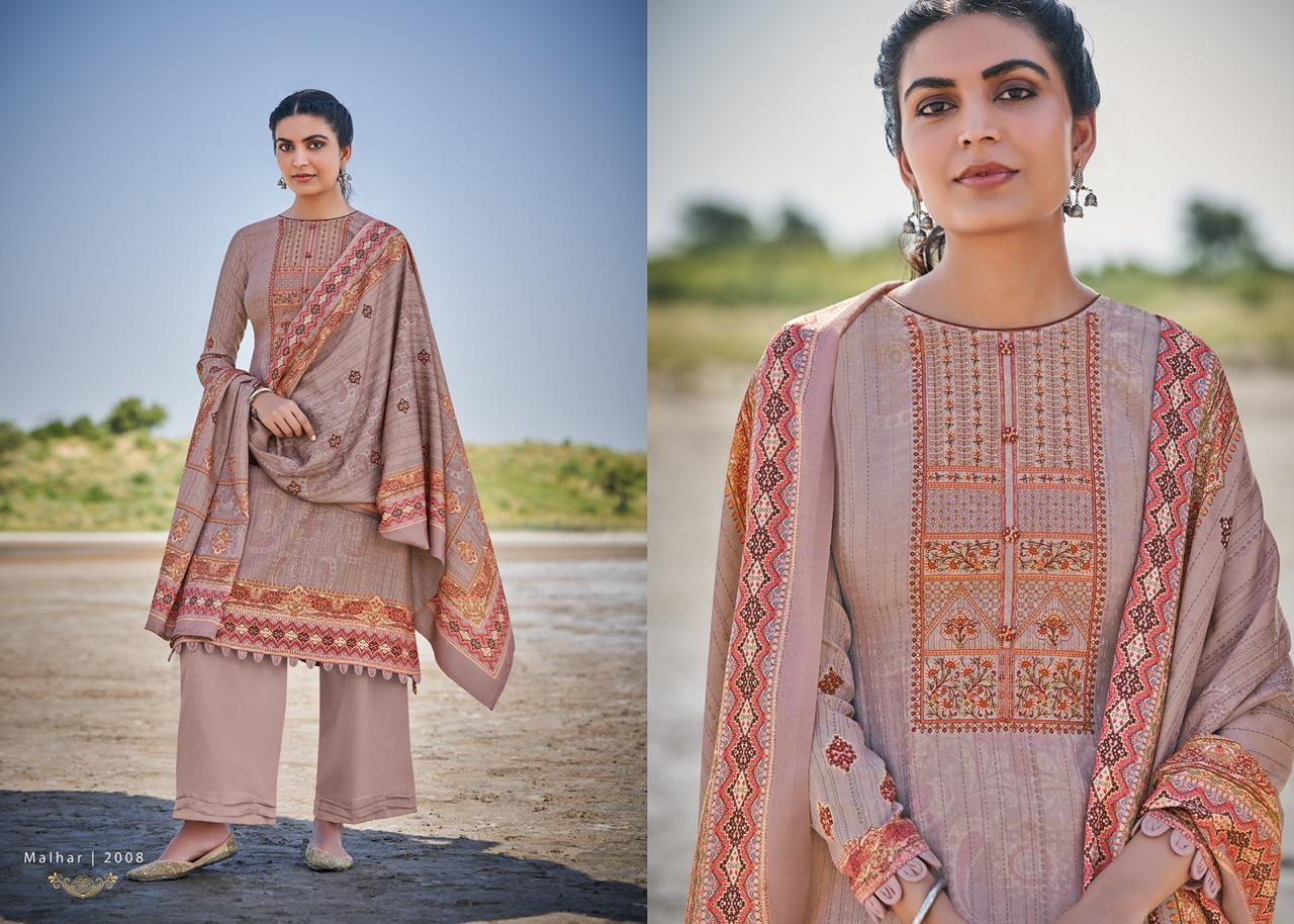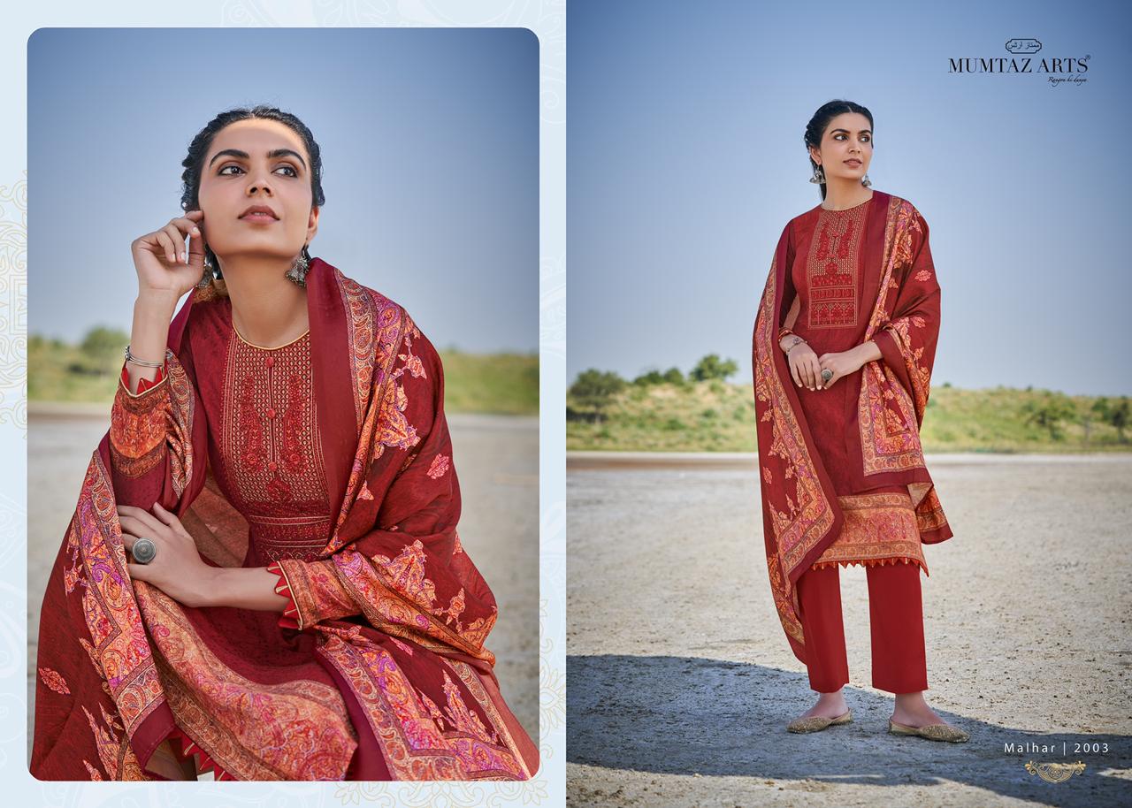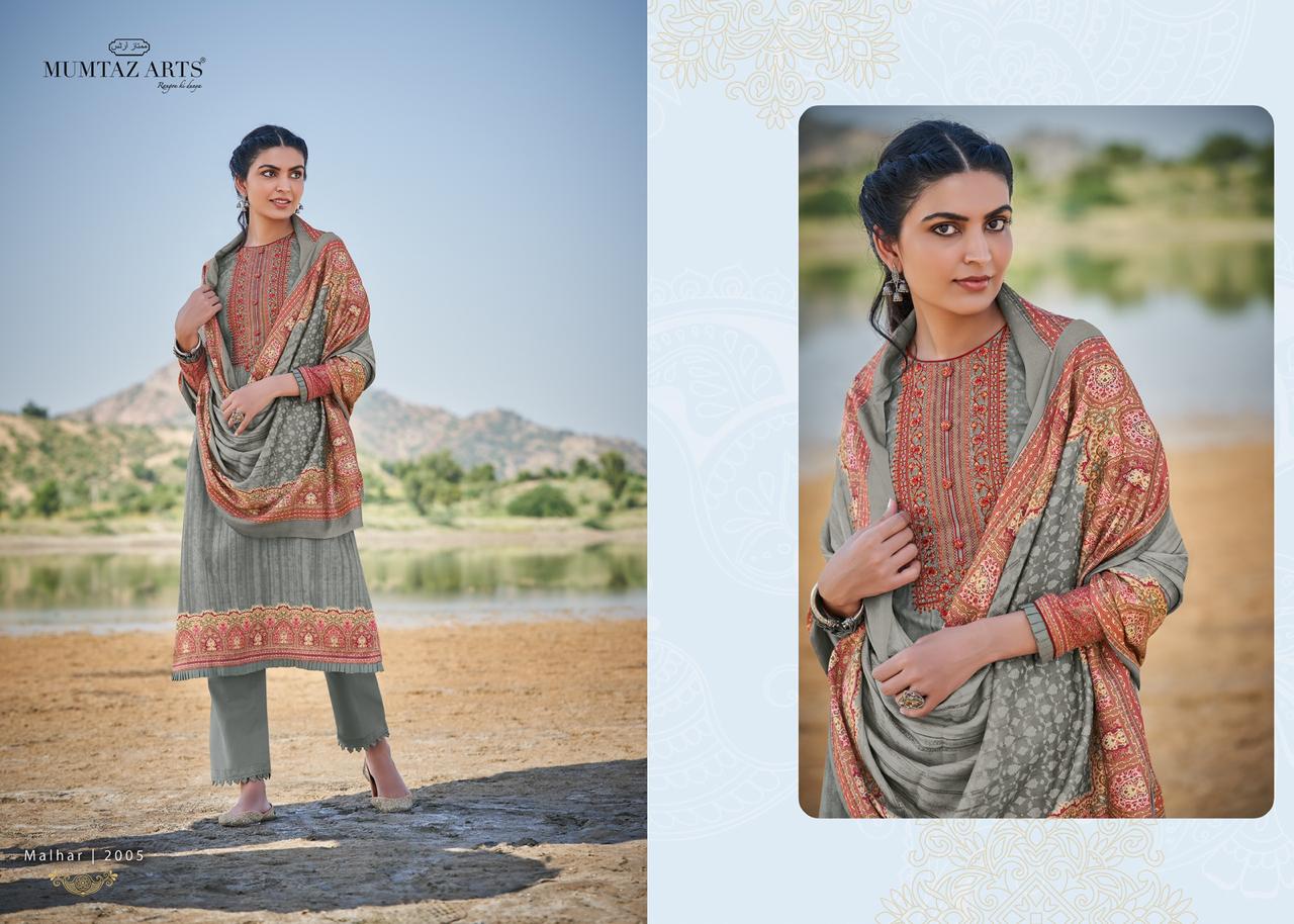 Mumtaz Arts Malhar Pure Jam Satin Digital Print Kashmiri Embroidery Work Dress Materials