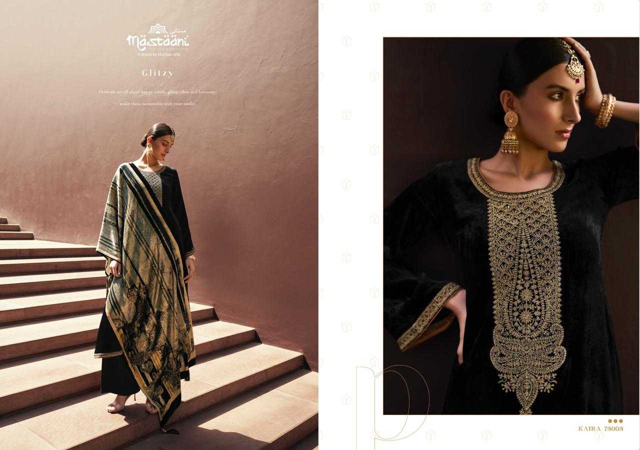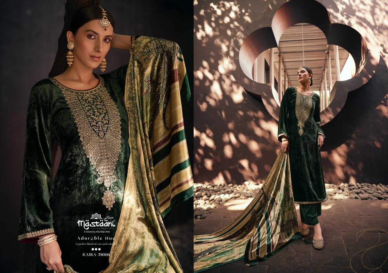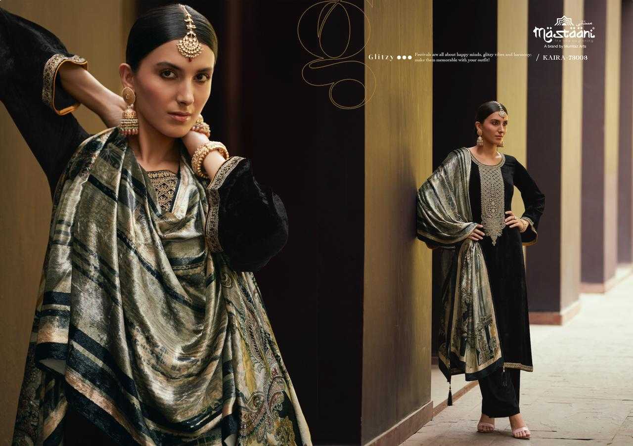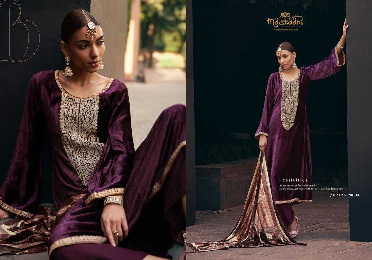 Name - Mumtaz arts MASTAANI Kaira Top - Pure viscose plush velvet with Elegant embroidery on neck and daman and sleeves Bottom - pure viscose pashmina Duppatta - pure viscose plush velvet Digitally Printed Suits-6 |