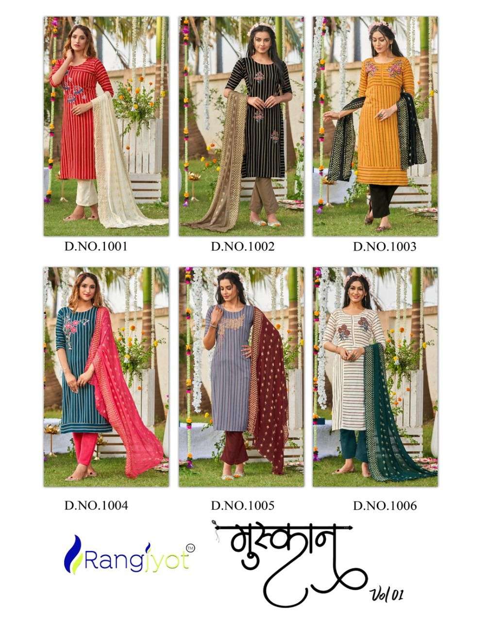muskan vol 1 by rangjyot rayon readymade salwar kameez