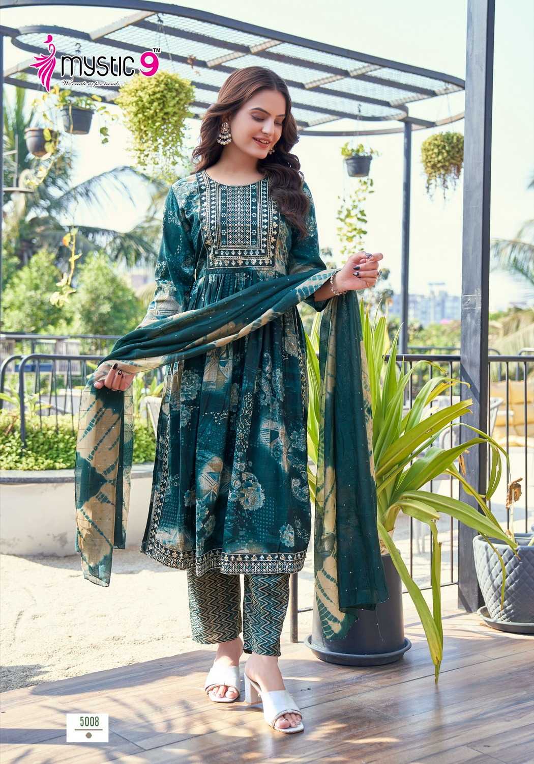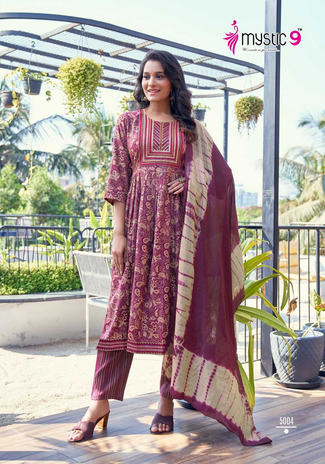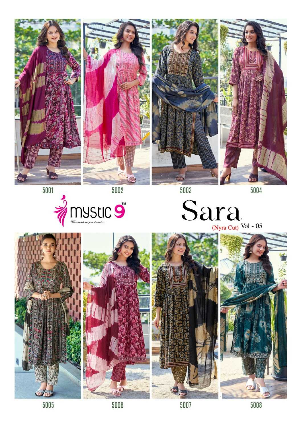 mystic9 sara vol 5 amazing readymade nayra cut kurti pant dupatta collection