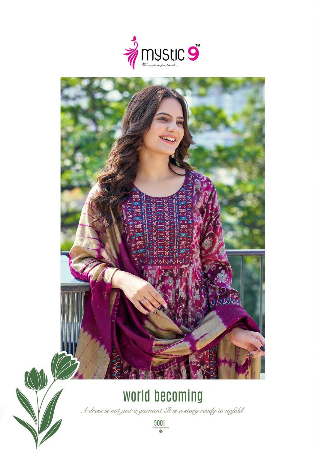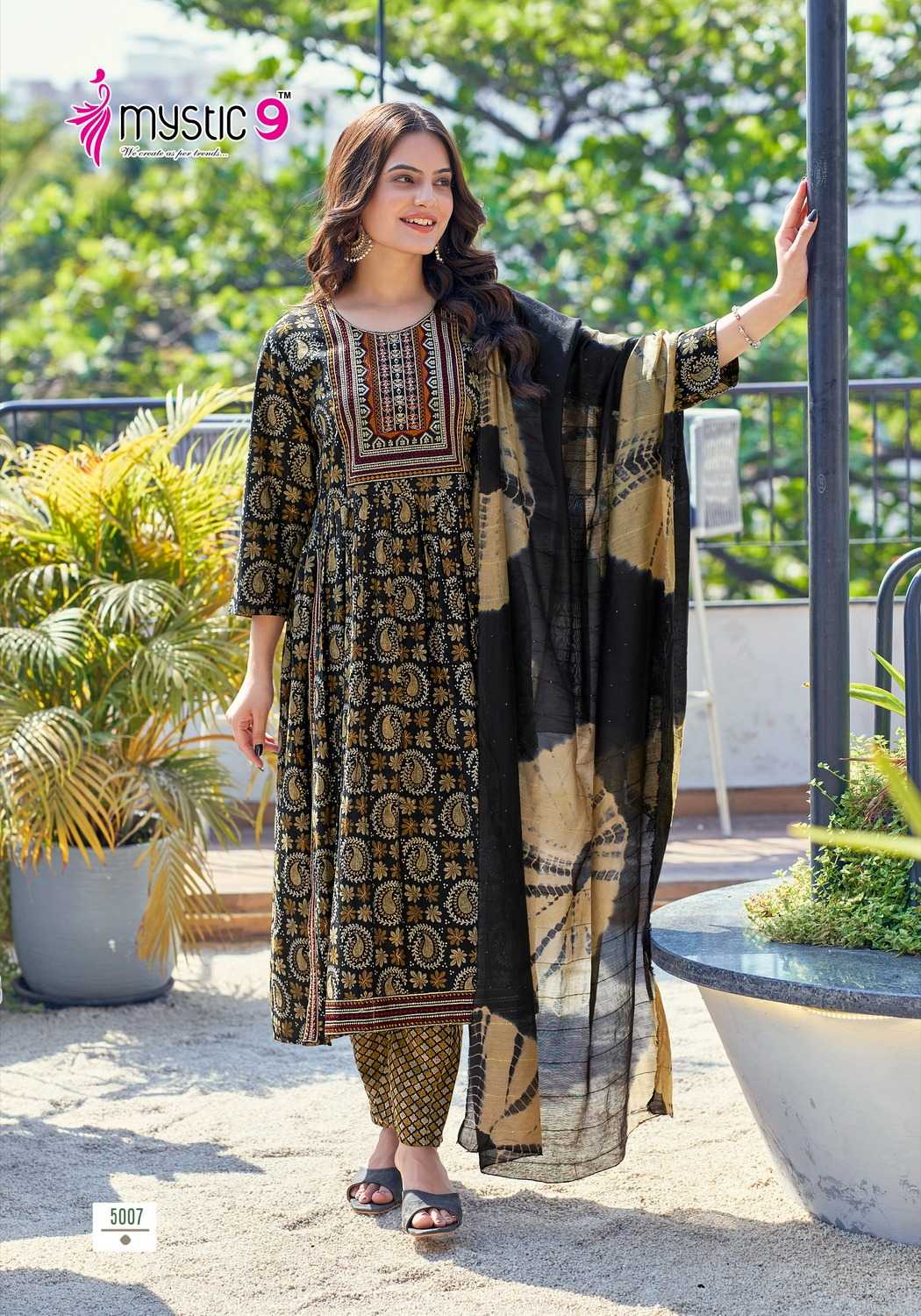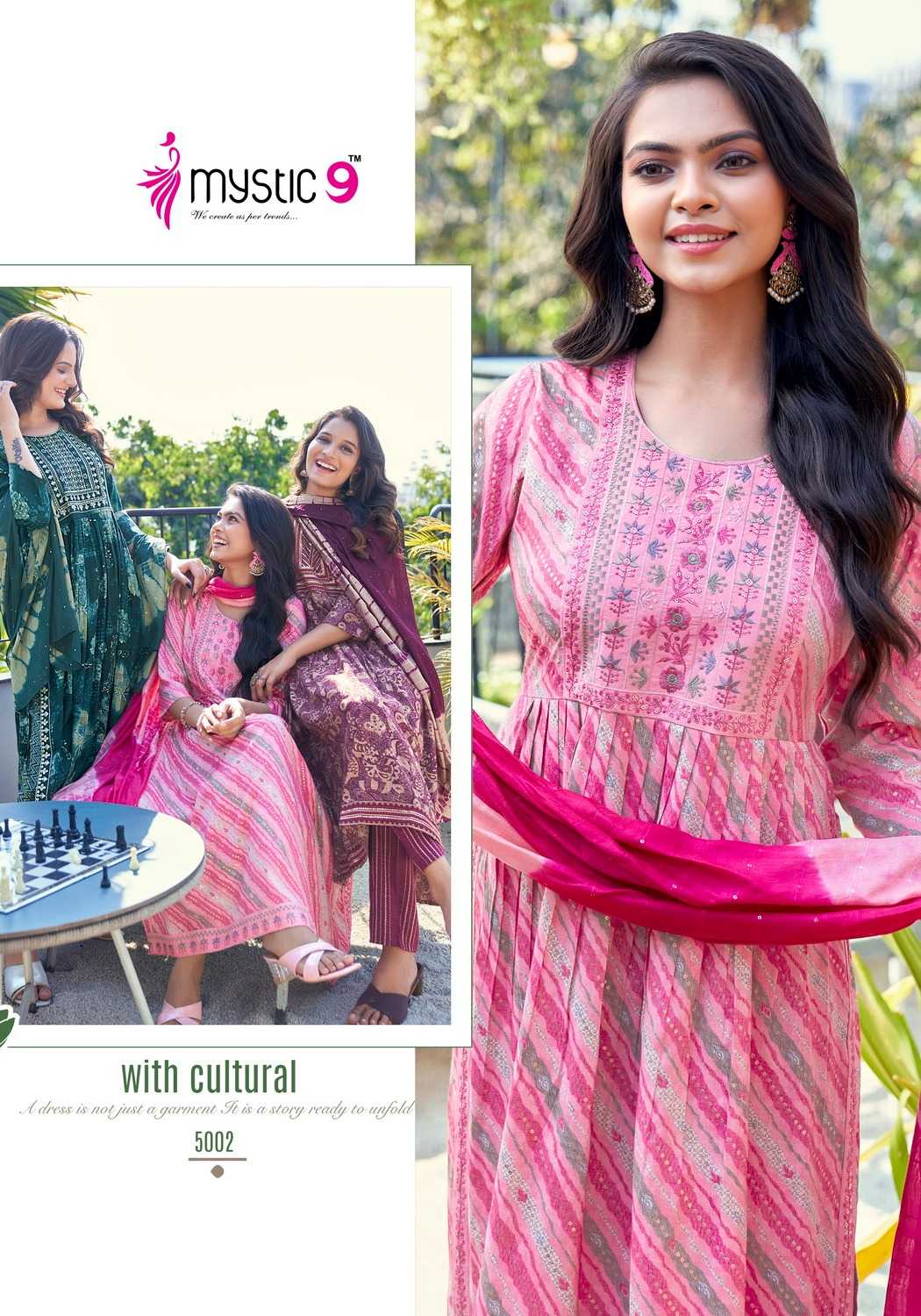 mystic9 sara vol 5 amazing readymade nayra cut kurti pant dupatta collection