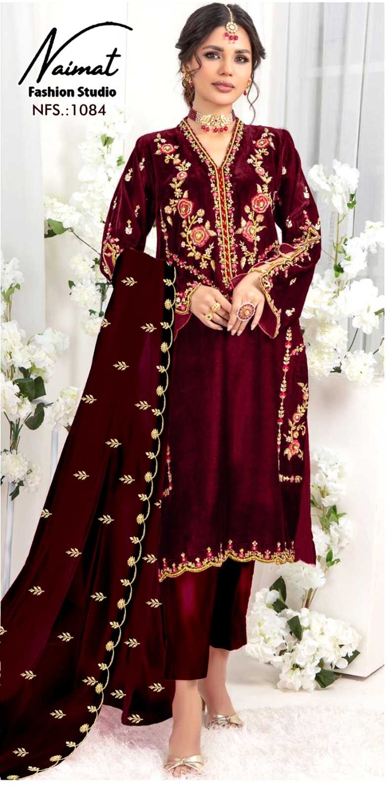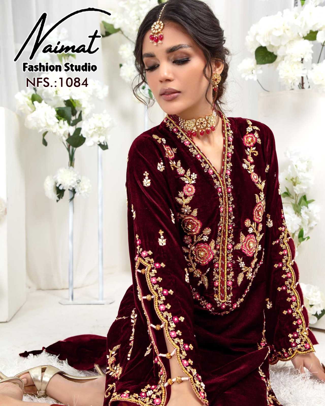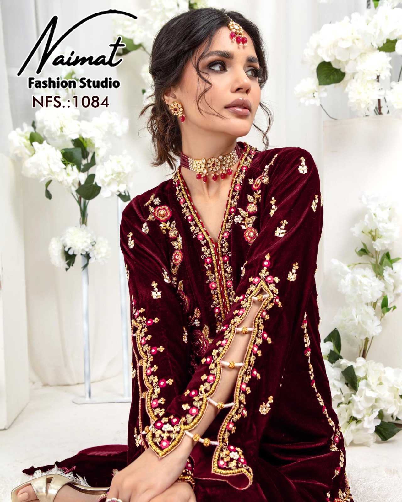 naimat 1084 pakistani winter wear fullstitch velvet top bottom with naznin dupatta