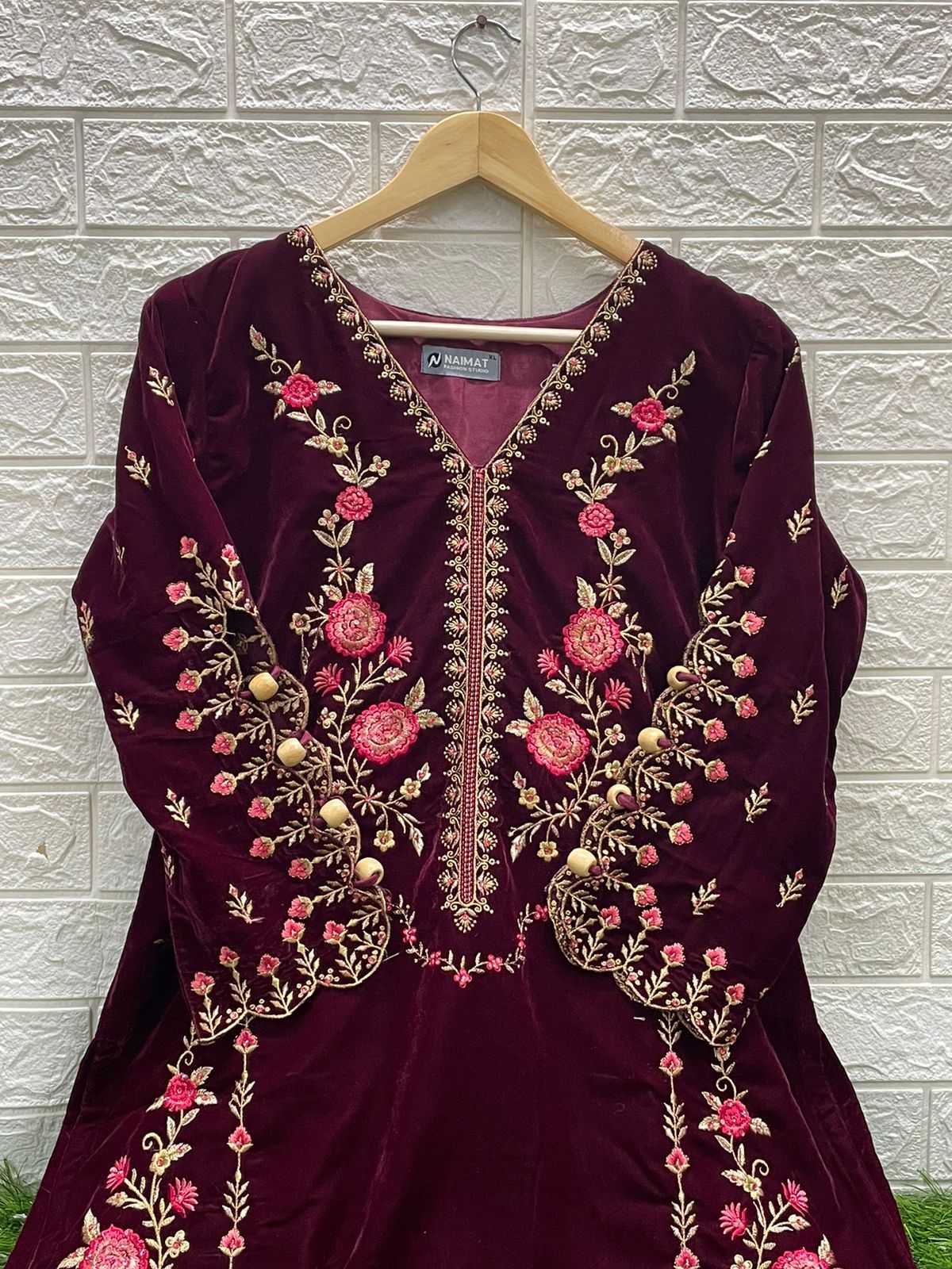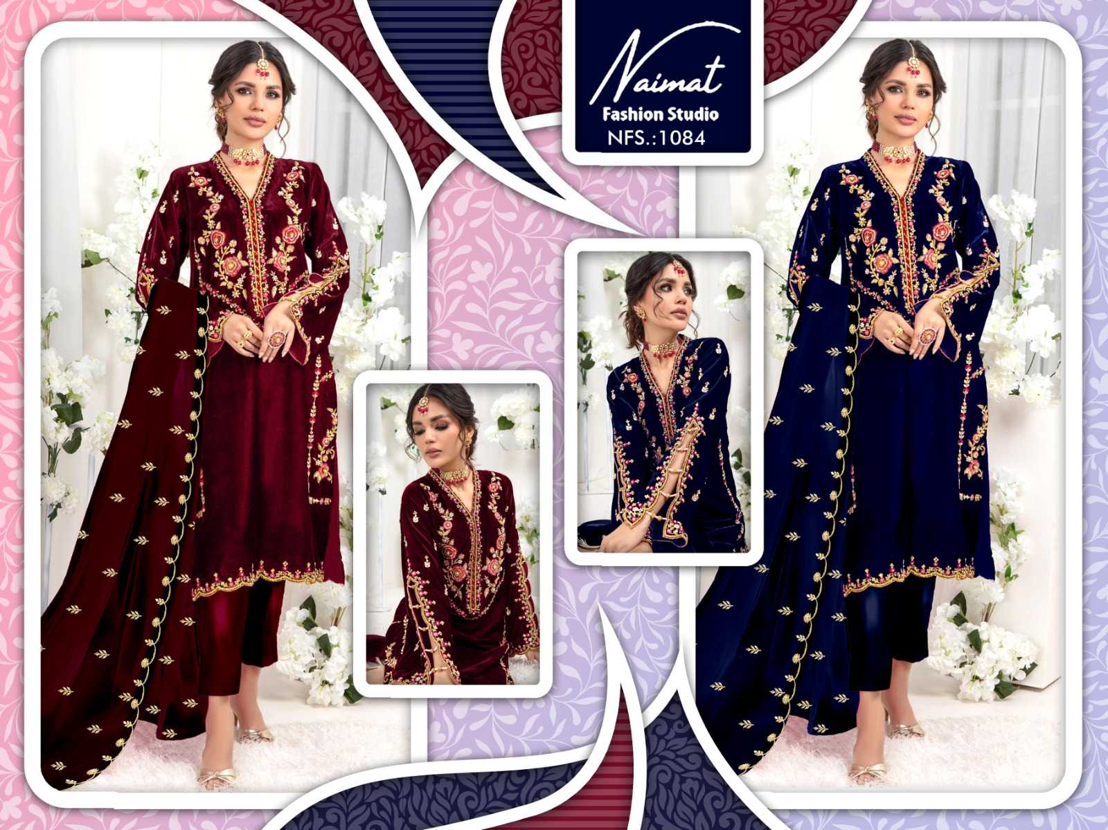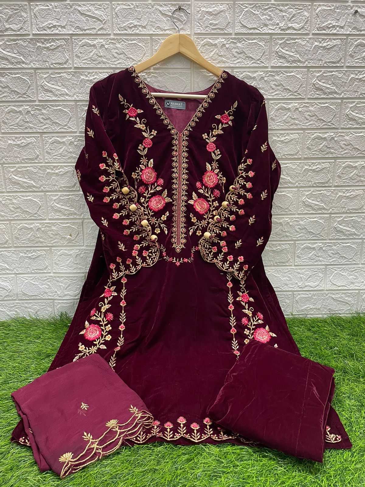 naimat 1084 pakistani winter wear fullstitch velvet top bottom with naznin dupatta