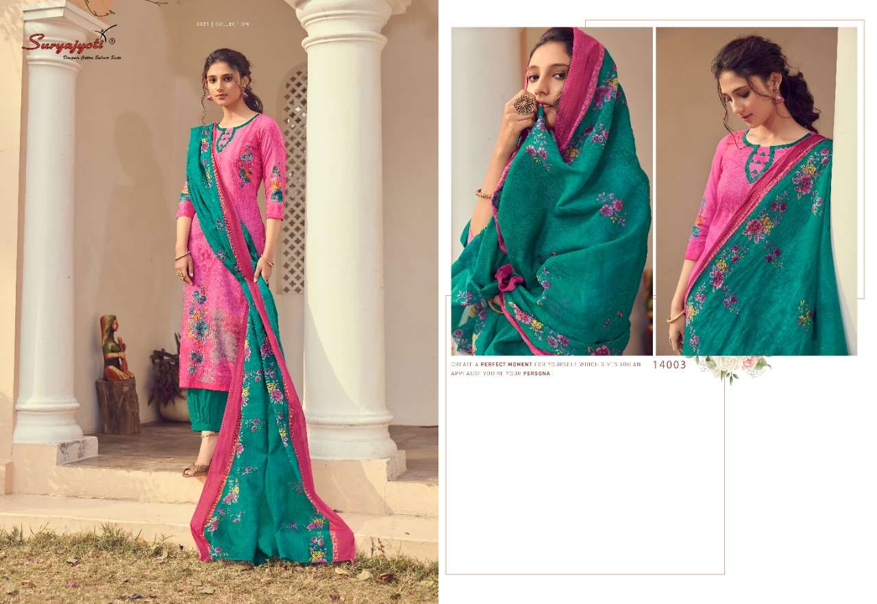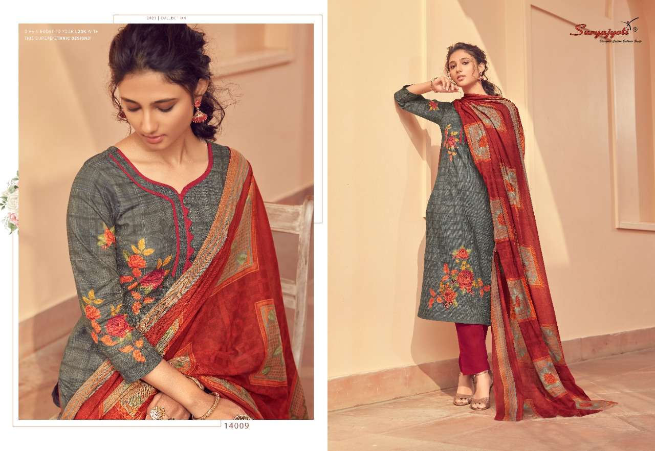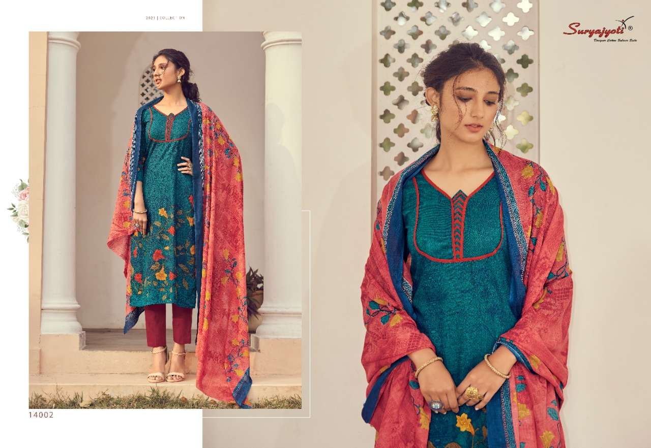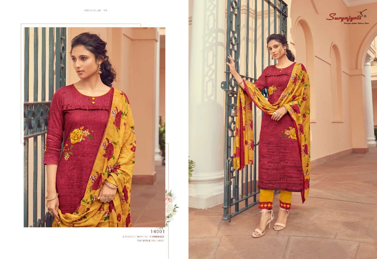 Suryajyoti Cotton Presents Latest Collection Launched on 17-02-2021. Presenting Beautiful collection of 10 PCS with Unstitched .
