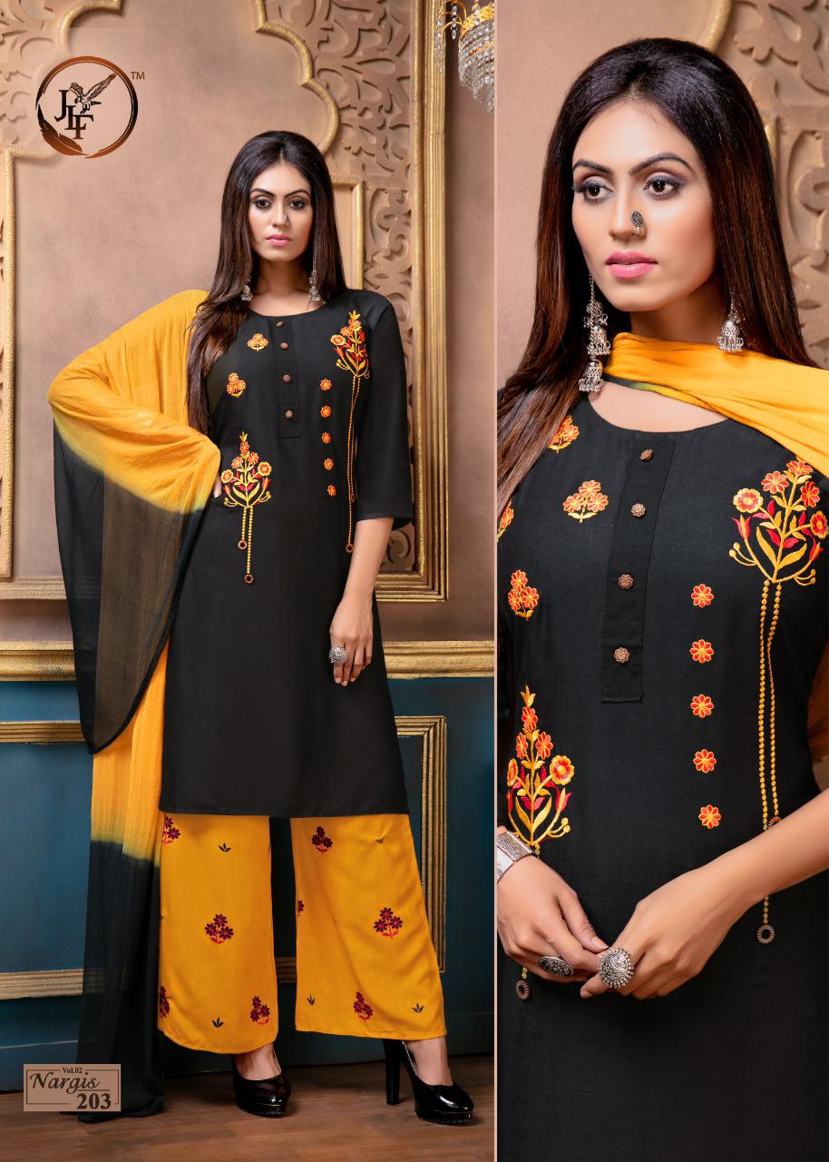 Nargis Vol 2 By Jlf Rayon Slub Readymade Plazzo Style Salwar Kameez