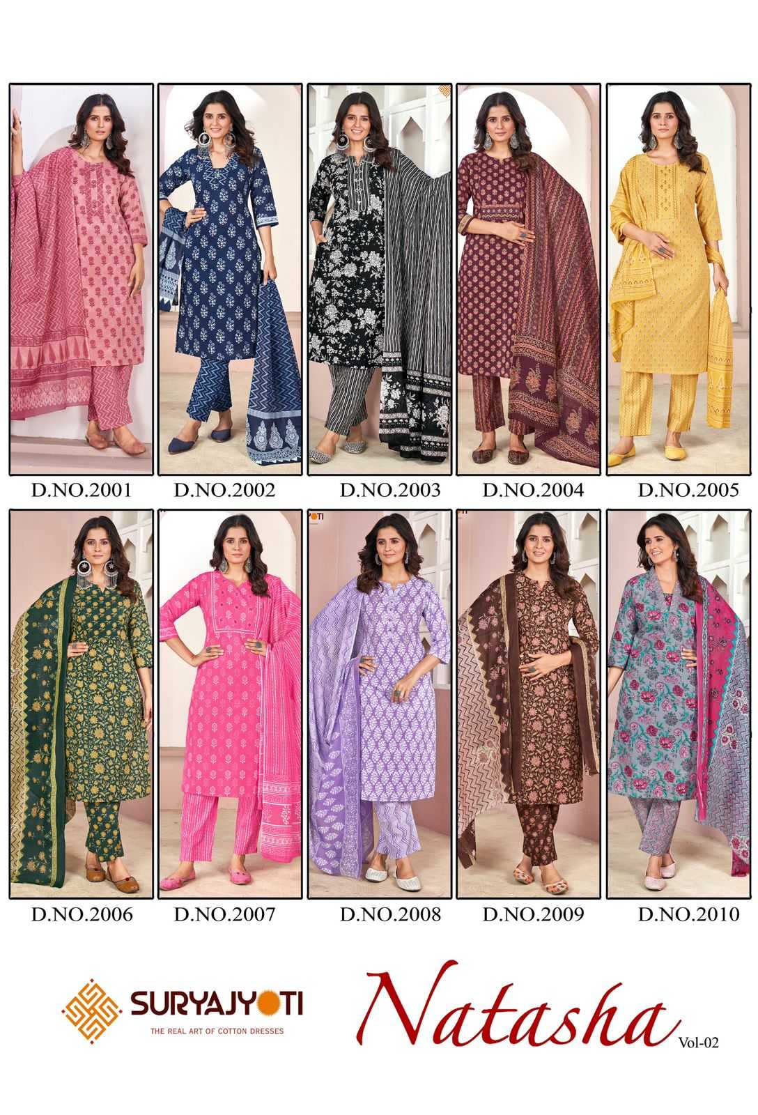 natasha vol 2 by suryajyoti lawn cotton print full stitch handwork 3pcs dress