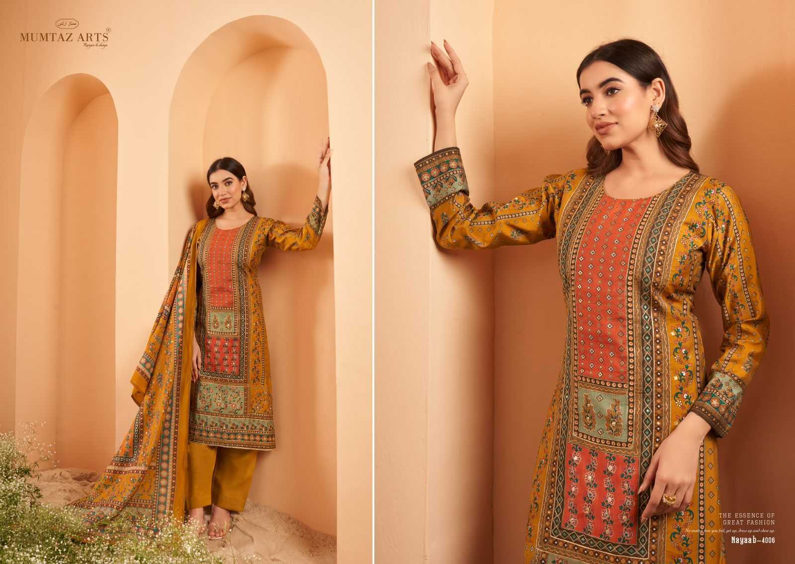 nayaab vol 2 by mumtaz arts foil print embroidery suits online