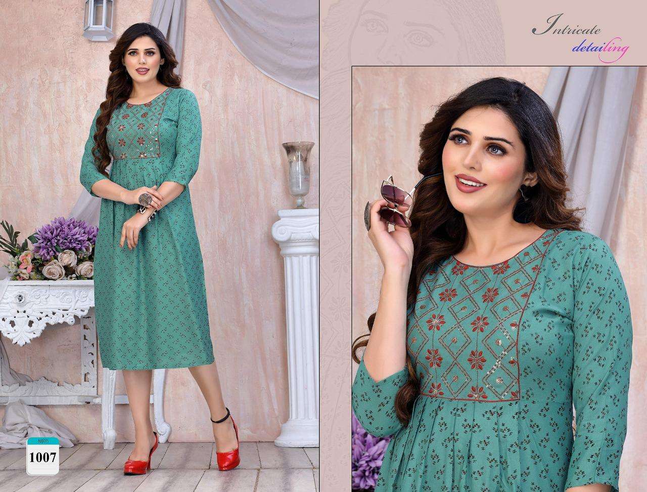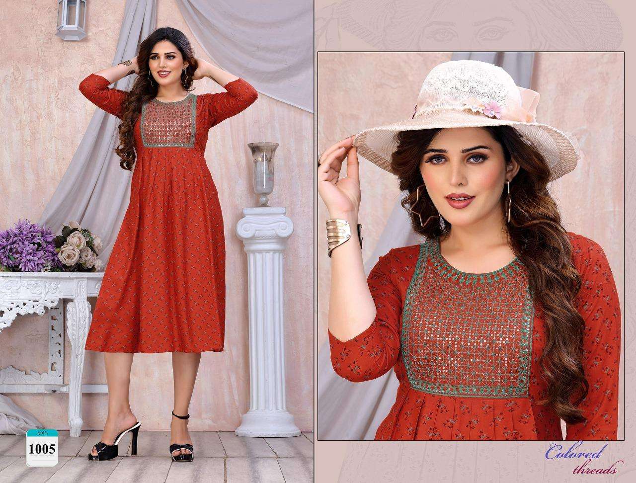 NEW RIYAA SMART GIRL-3 Rayon print EMBROIDERED KURTI CATALOG WHOLESALER BEST RATE