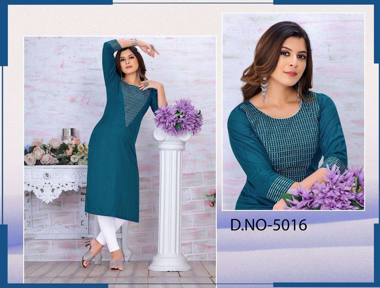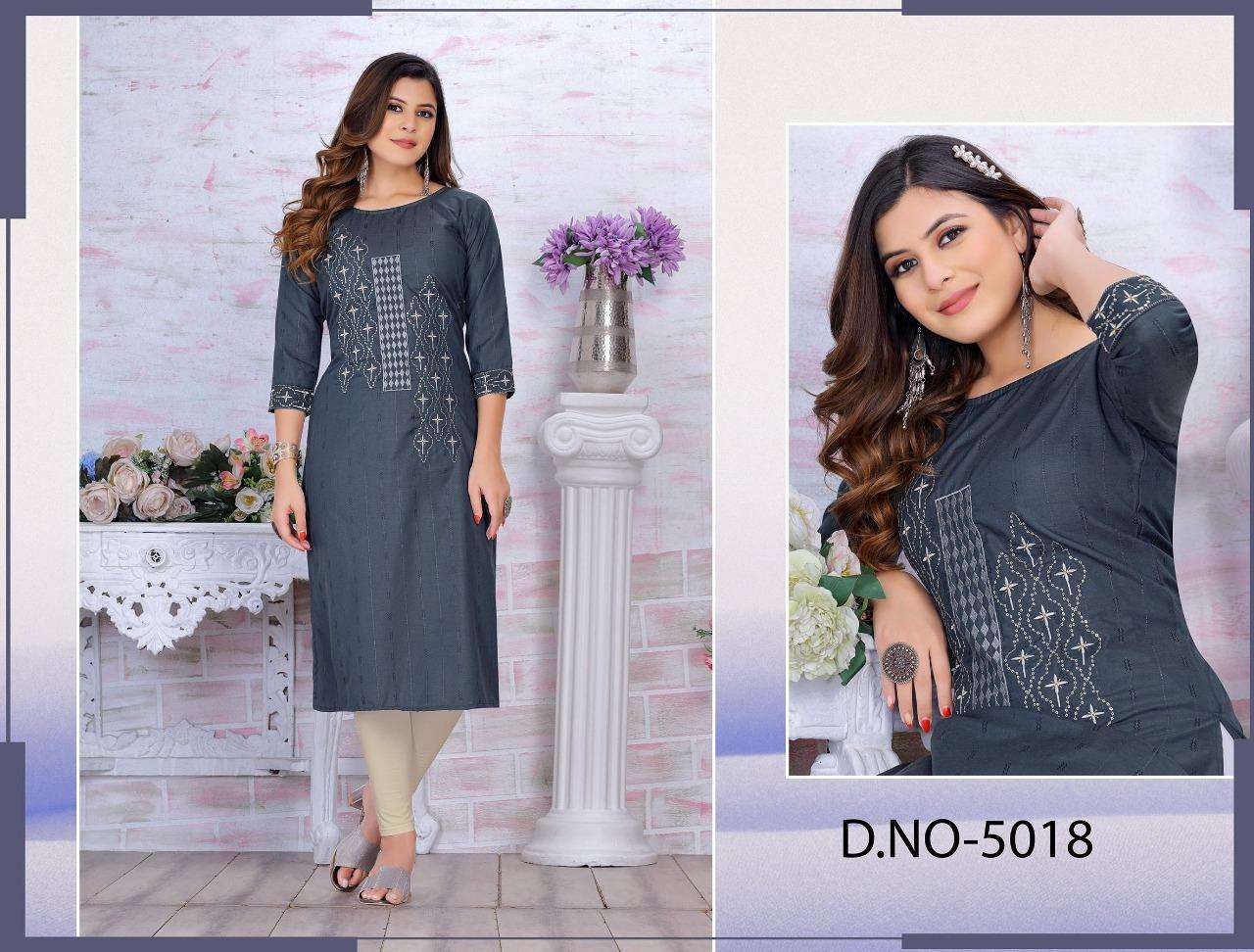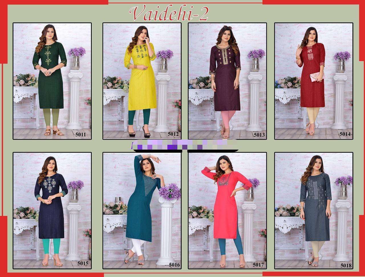 New Vaidehi-2 14 Kg Self Ambosse Bomay Rayon Embroidered With sequence KURTI CATALOG WHOLESALER BEST RATE