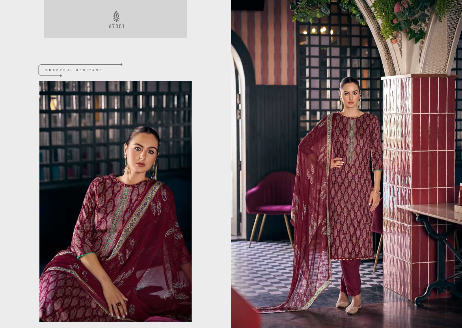 nishant fashion sarhan elegant jaam silk with fancy work dress material