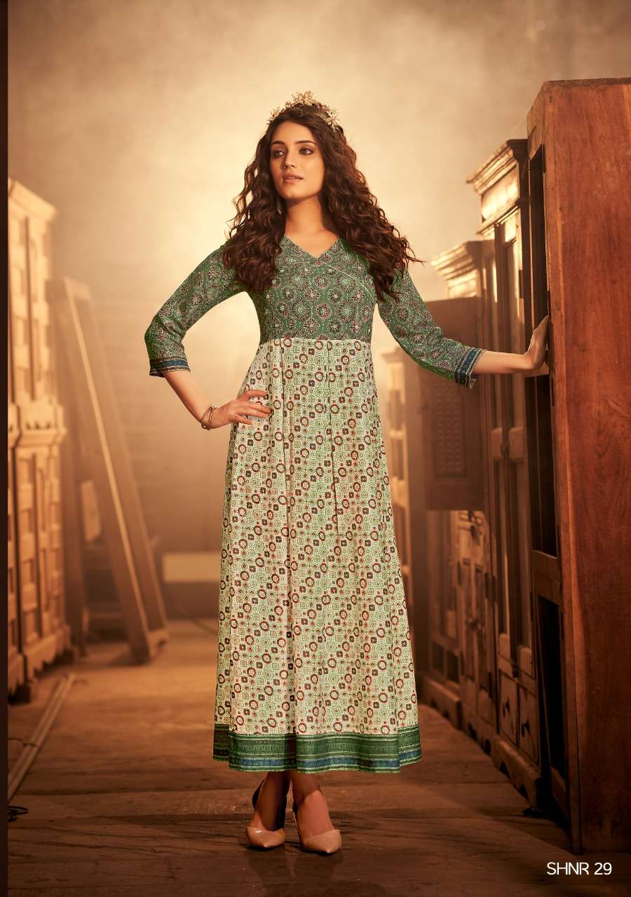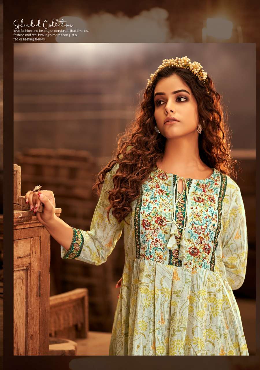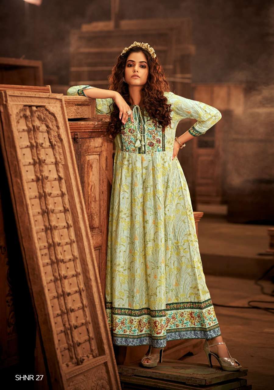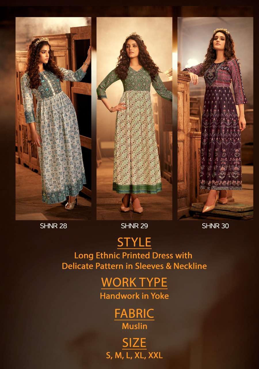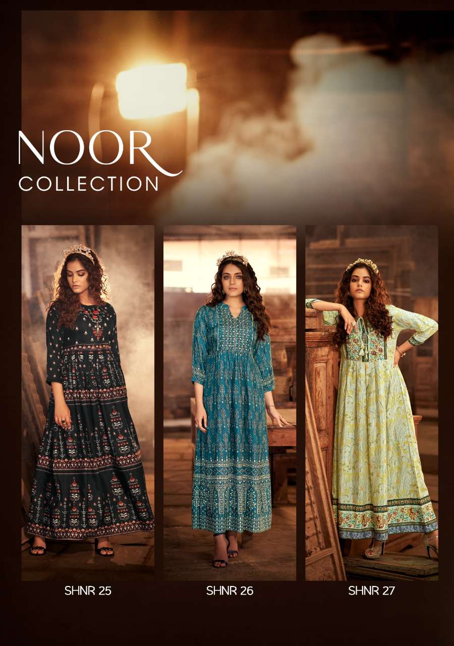 noor by shichi muslin digital printed handwork fancy kurti gowns