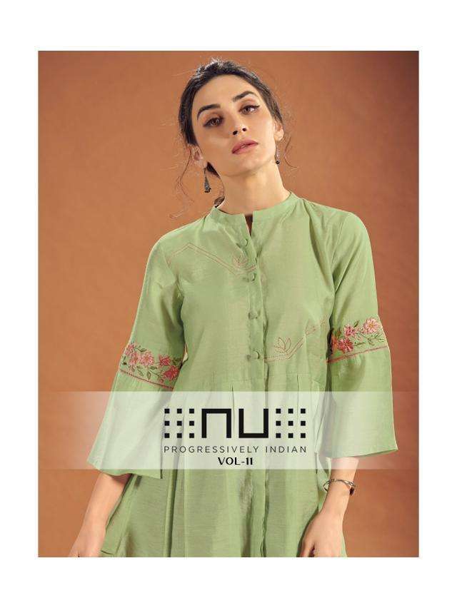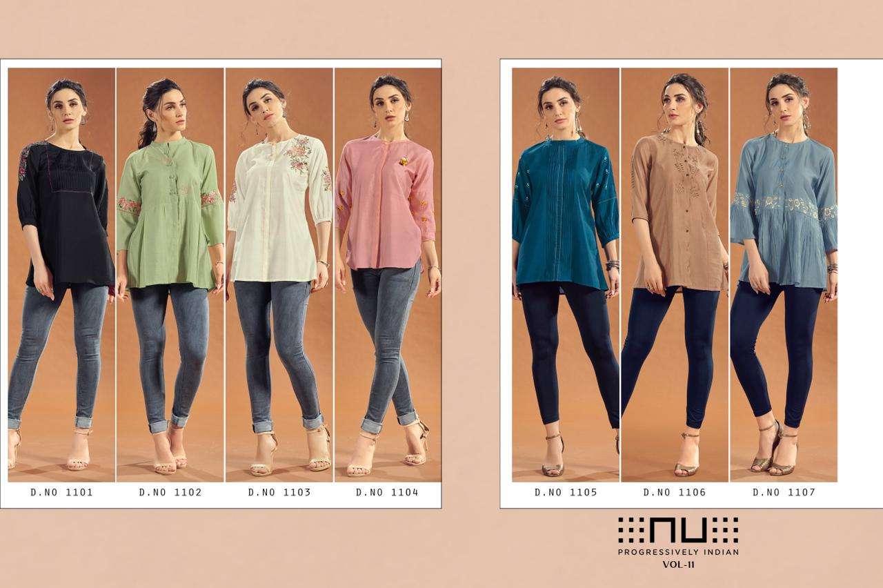 NU is back with yet another volume of most stylish Tops embellished with machine embroidery. Catlog Name â NU- Vol-11 Fabric â Viscose Silk No. Of Pieces â 7 Avg. Price â 575/- Sizes Available - S,M,L, XL,2XL,3XL Length - 29" Full Set only. Dispatch date - Monday 12th July |