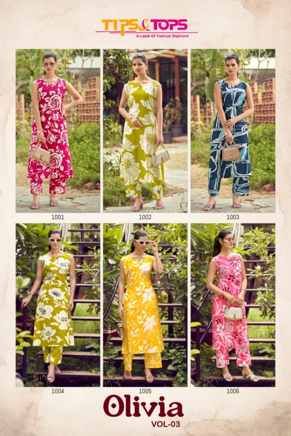 olivia vol 3 by tips & tops rayon fully stitch classic kurti with pant