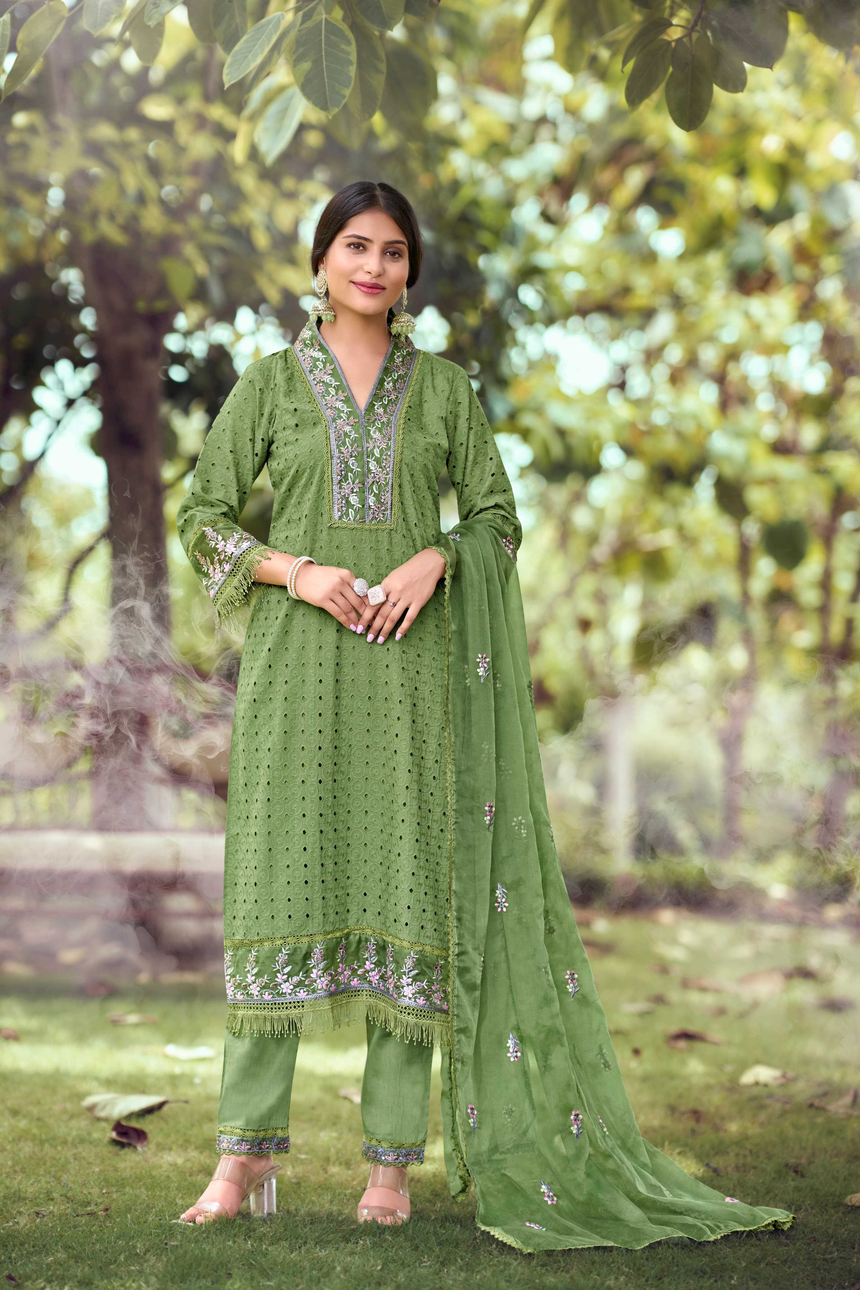 ossm summer love vol 2 cotton chikankari embroidery full stitch lace work kurti pant dupatta