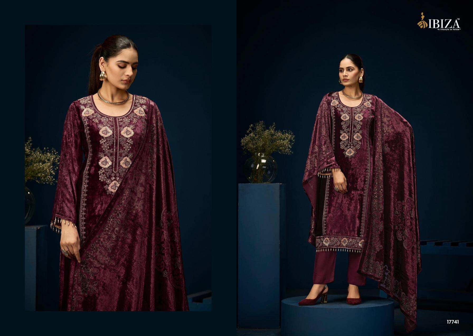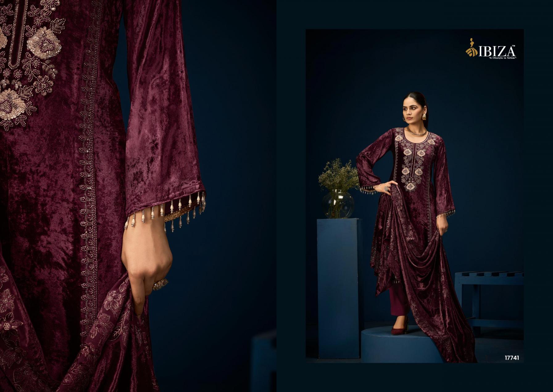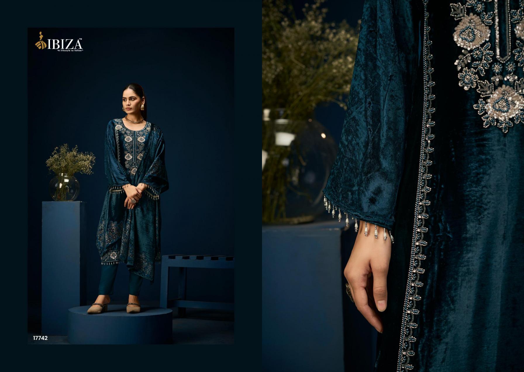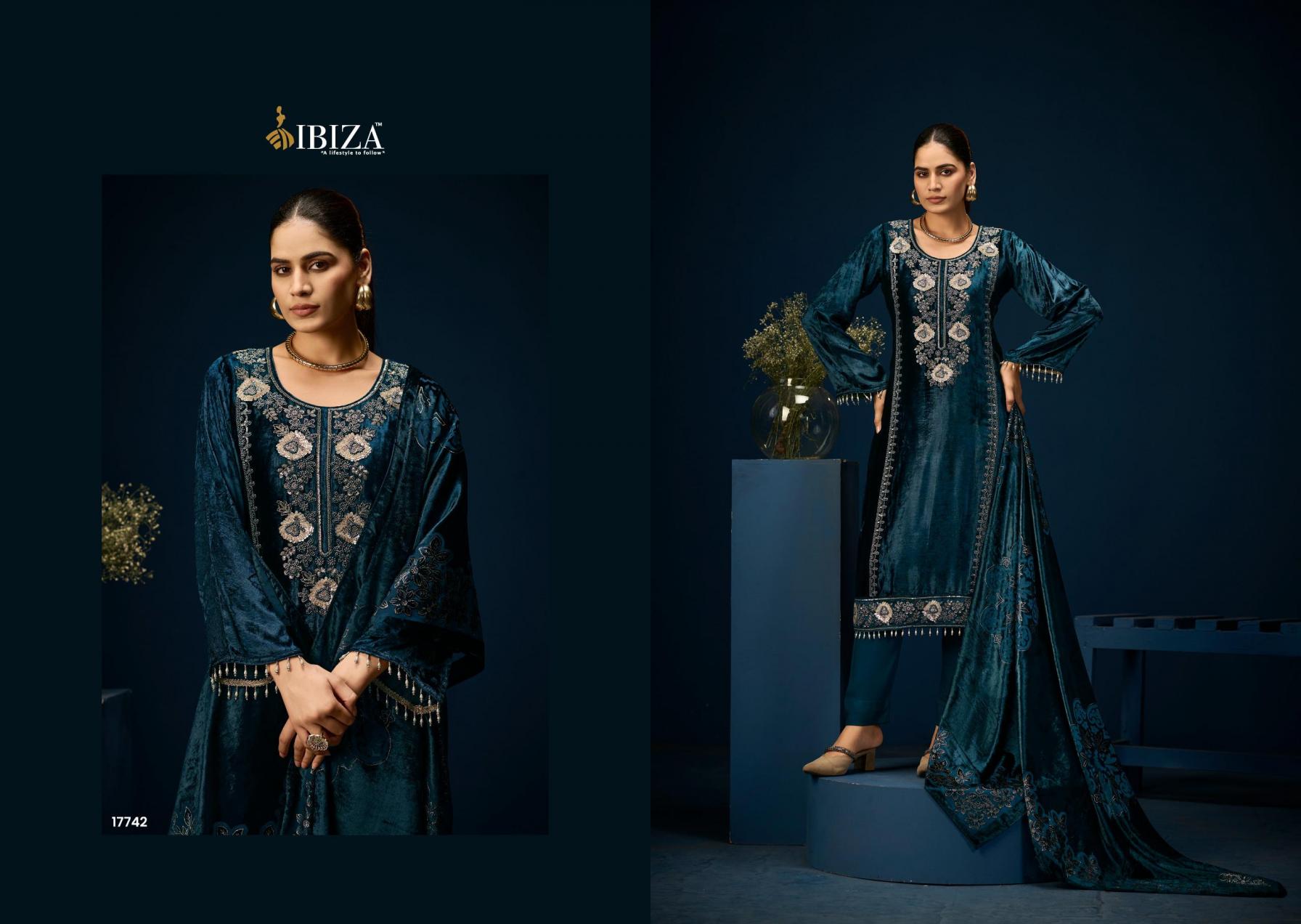 🙏🙏 IBIZA 🙏🙏 NEW SERIES OUDH PREMIUM VELVET 👊Fabric Details👊 👗Top:-PURE VISCOSE VELVET BEADS WORK WITH LATKN LACE BOTTOM:-PURE PASHMINA 🔻Designs:- 4 PCS Rate:- 2795/-