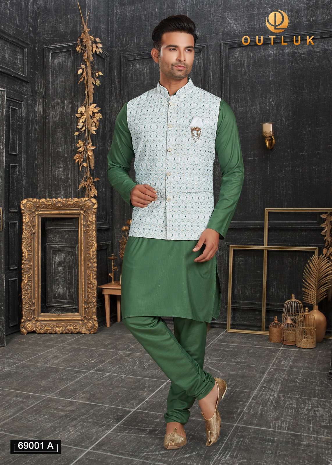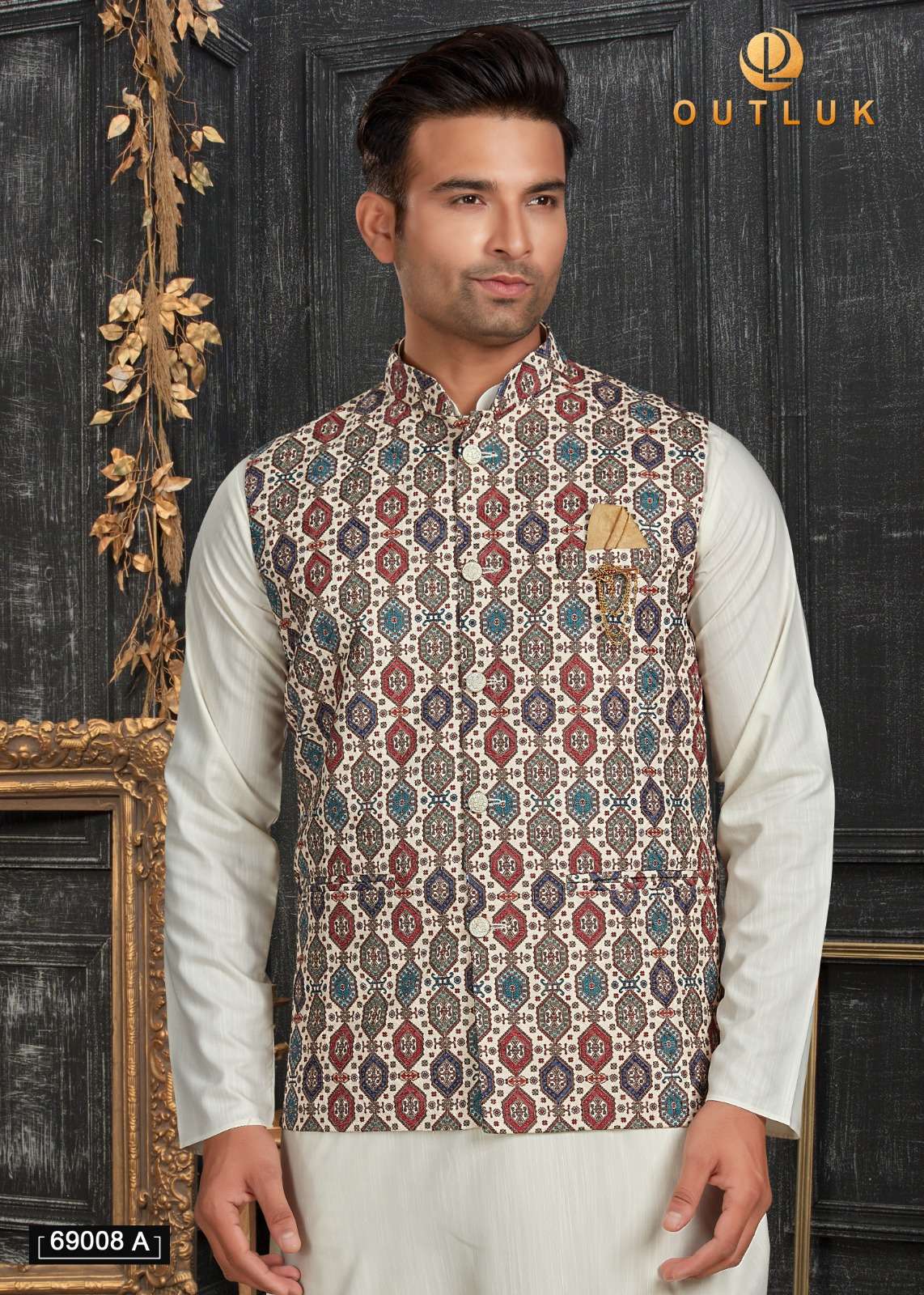 outluk vol 69 a Designer Koti set with Digital Print and Lucknowi Work Jacket mens western