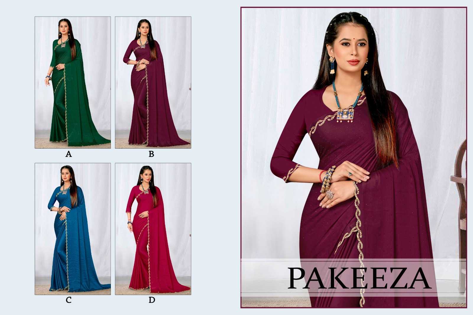 PAKEEZA BY RANJNA SAREE FANCY FABRICS SIROSKI DIAMOND WORK FANCY BORDER SUPER HIT COLLECTION