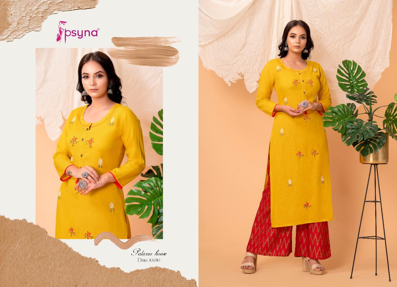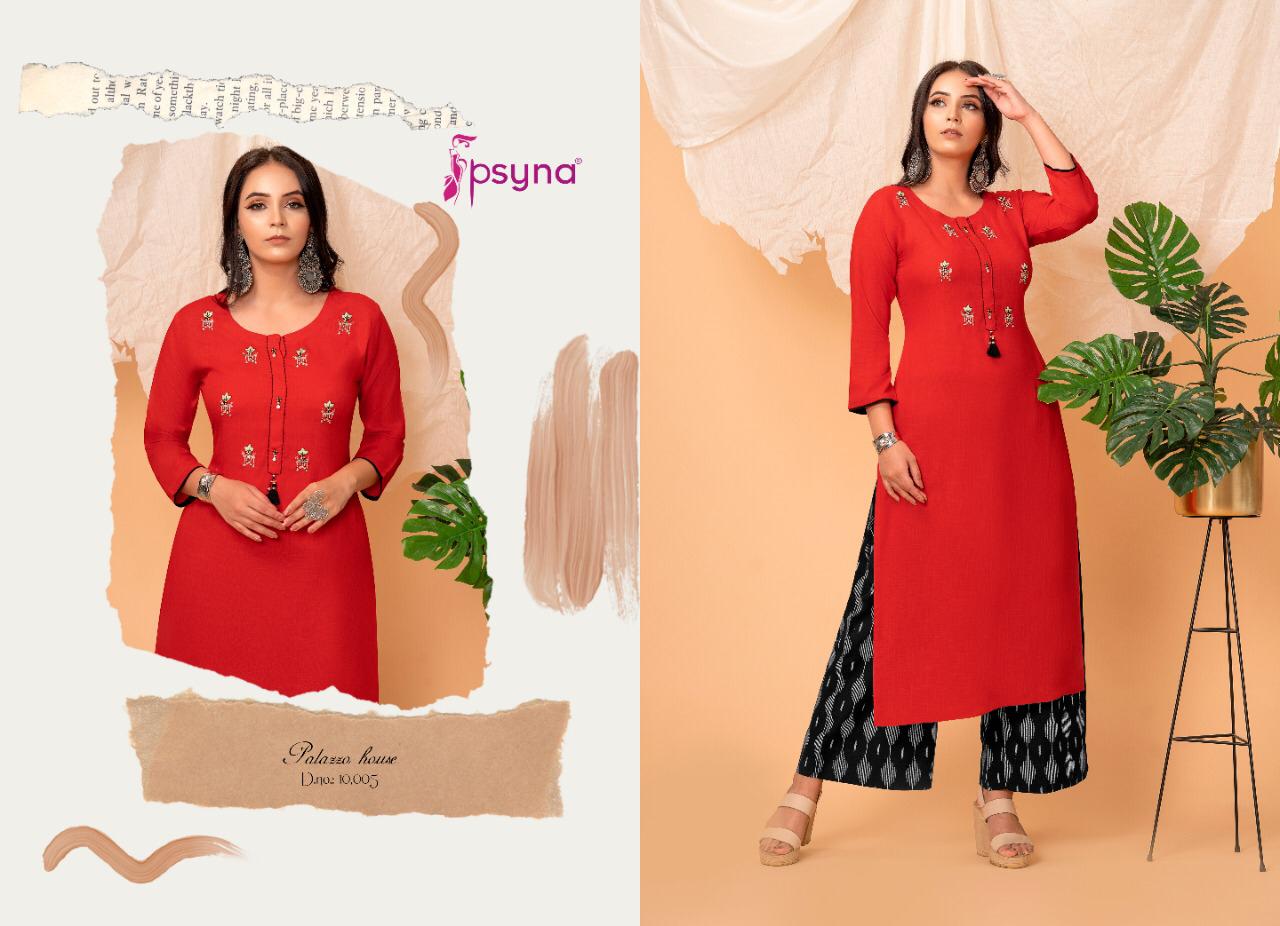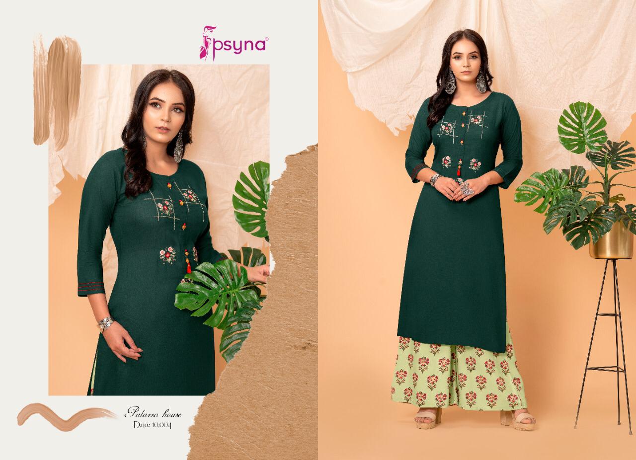 Palazzo House Vol 10 By Psyna Rayon Stylish Long Top With Plazzo Wholesaler