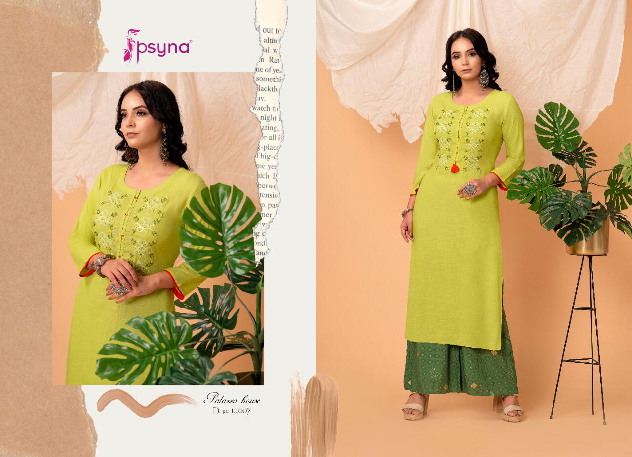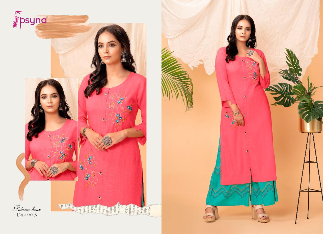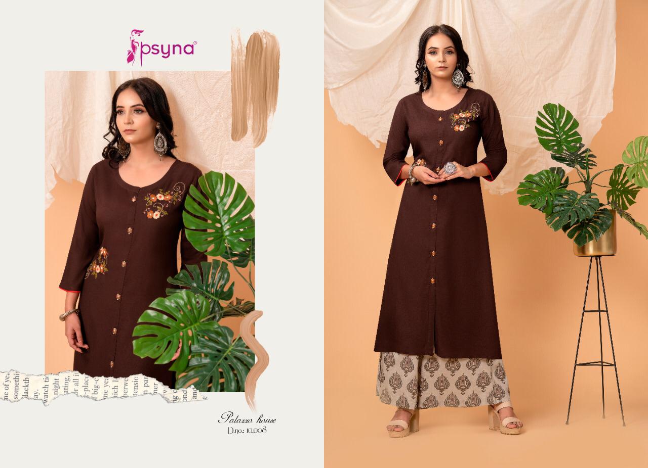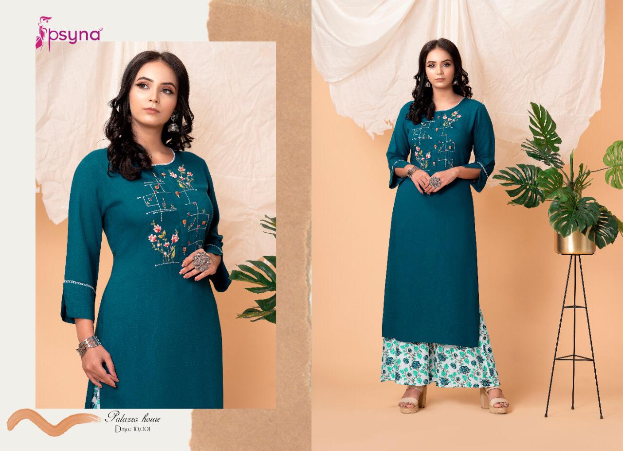 Palazzo House Vol 10 By Psyna Rayon Stylish Long Top With Plazzo Wholesaler