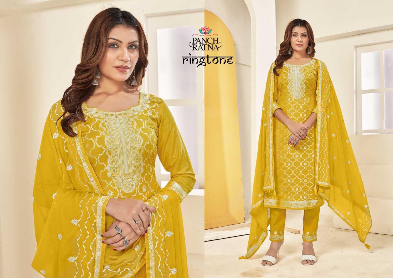 panch ratna ringtone fancy muslin silk unstitch salwar kameez