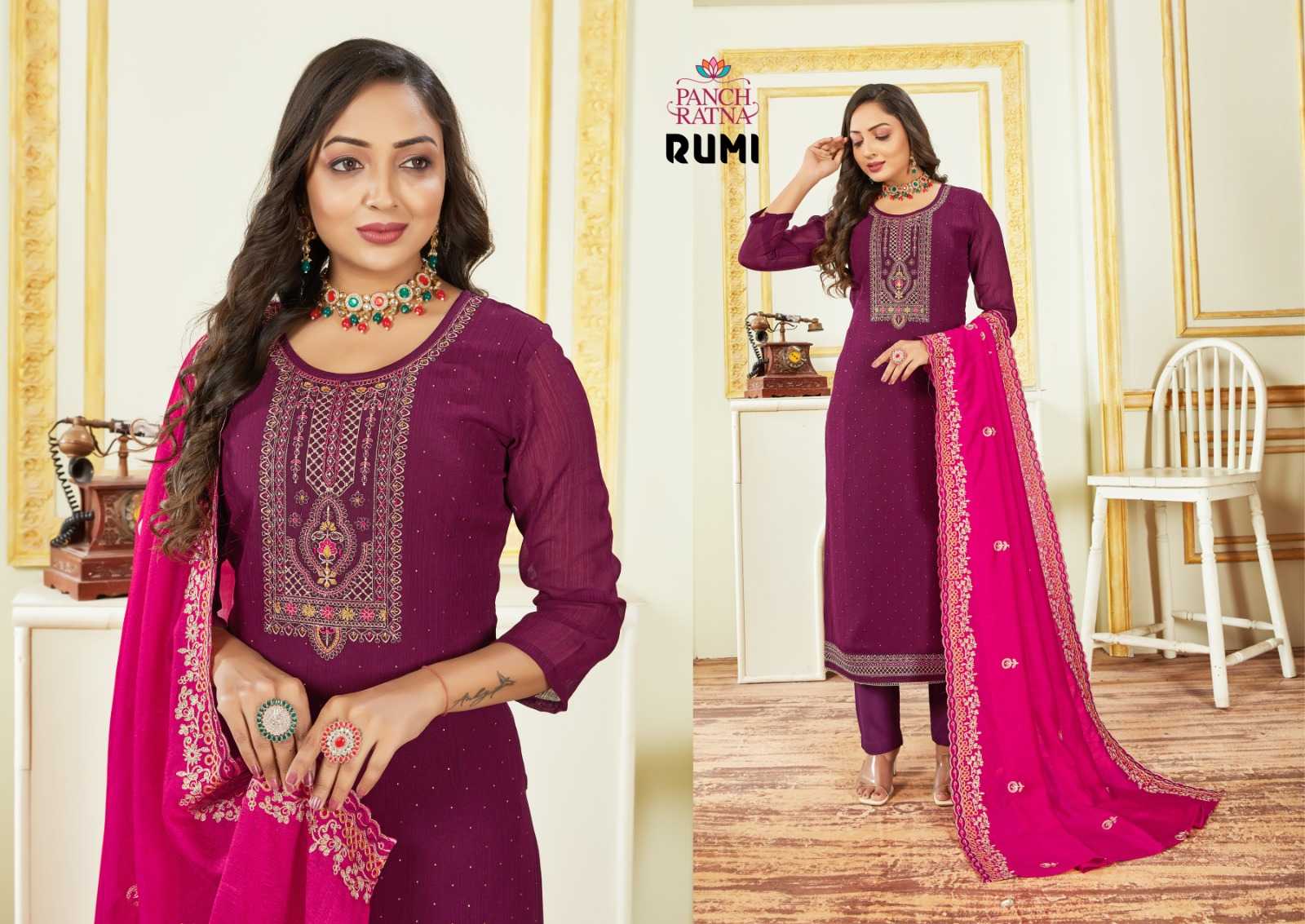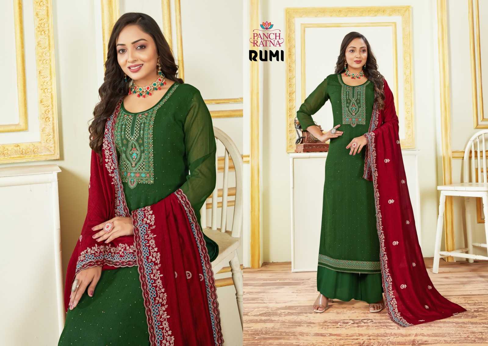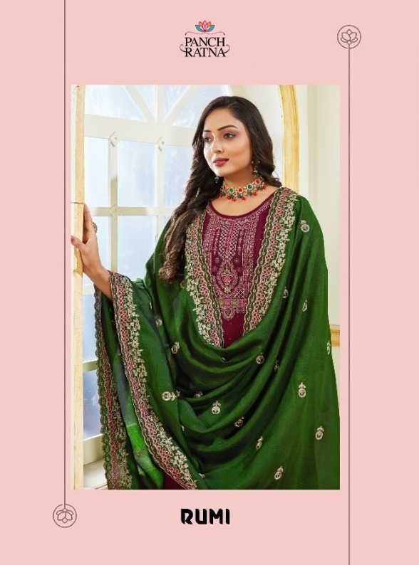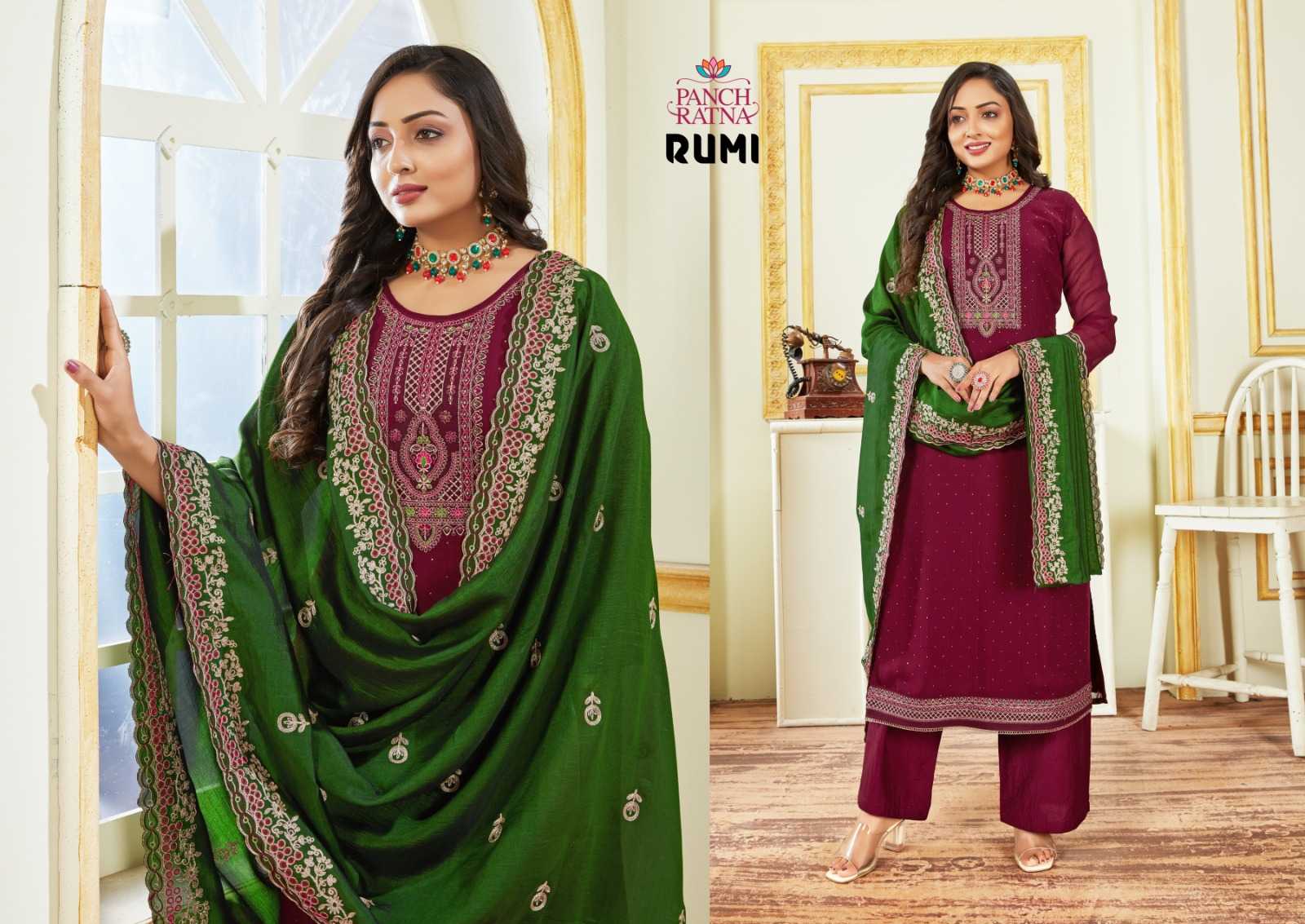 panch ratna rumi amazing designer fancy work 3pcs dress material