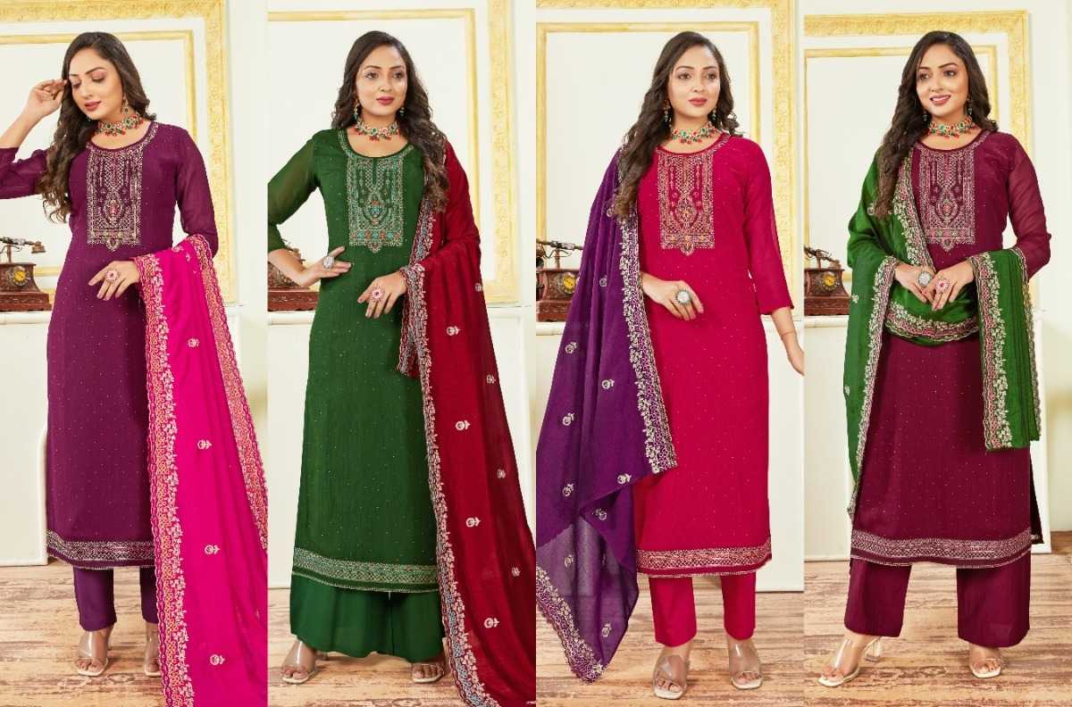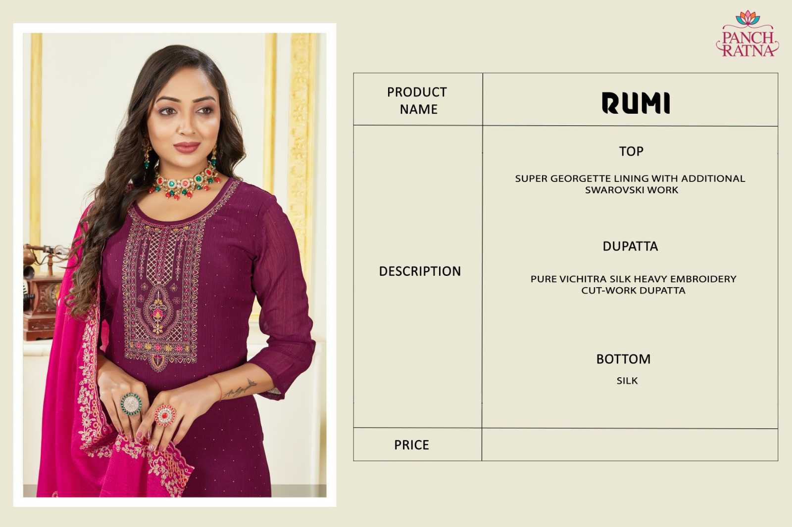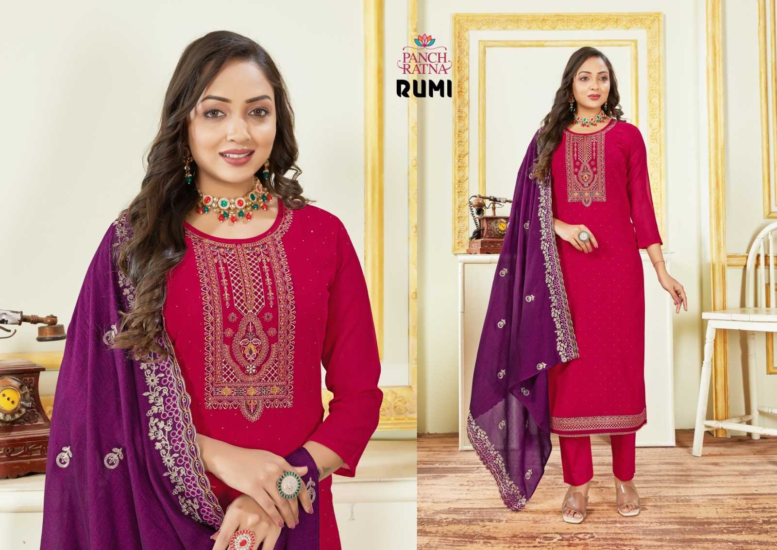 panch ratna rumi amazing designer fancy work 3pcs dress material