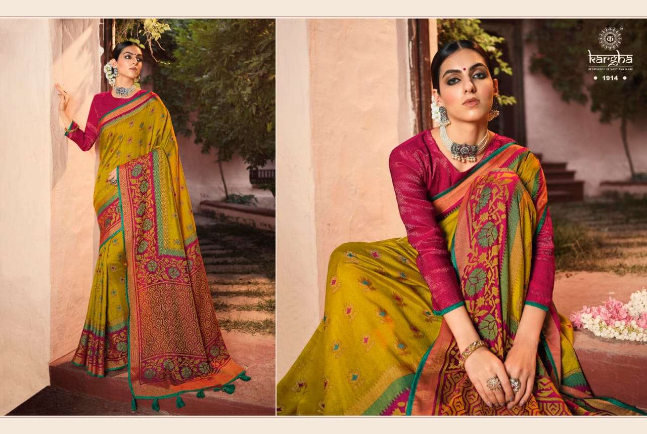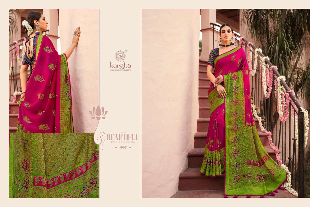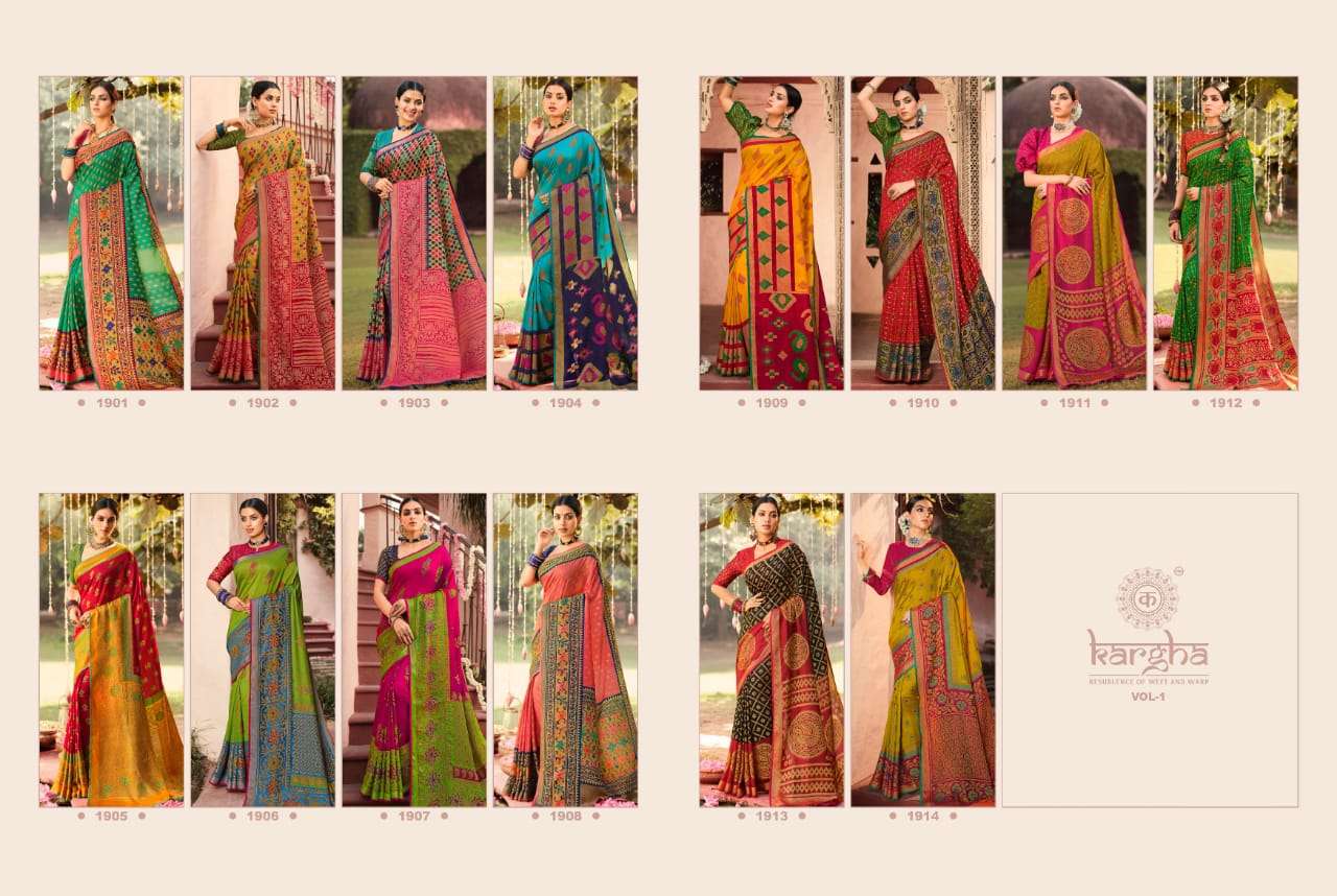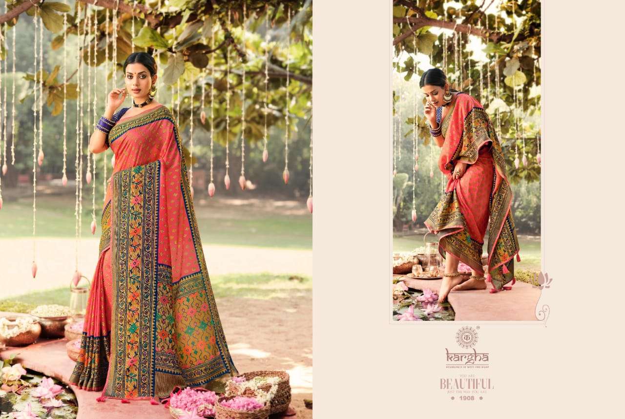 PANKH by PINK LOTUS PRESENTS ITS LATEST DESIGNER SAREE CATALOGUE KARGHA VOL 1 1901-1914 SERIES Silk - Fabrics Cut-6.30 Mtrs 14 PC CATALOG Rate - 1195/-₹ Set to Set Only 5%GST APPLICABLE SET TO SET DELIVERY 5-6 days |