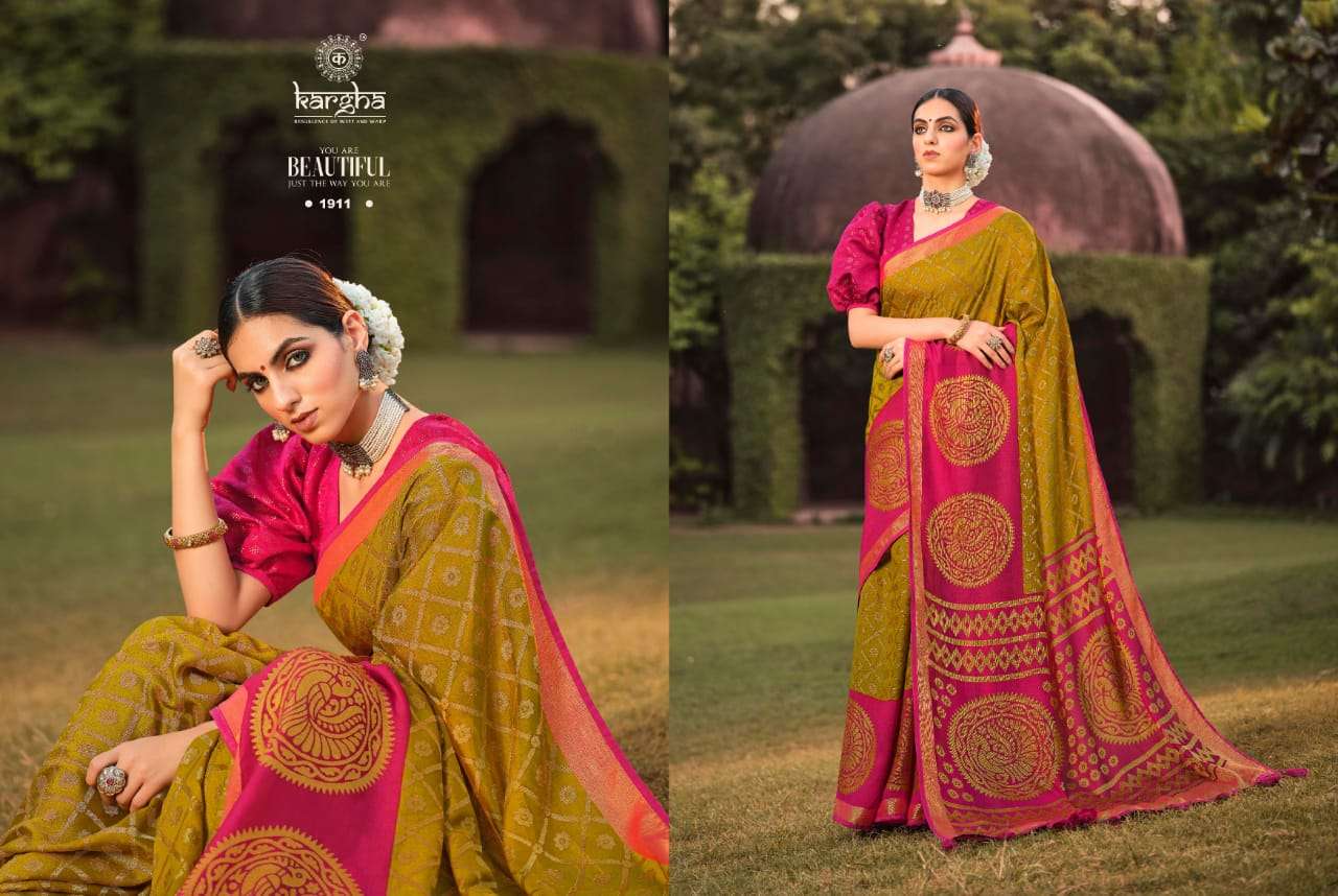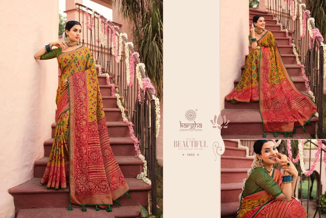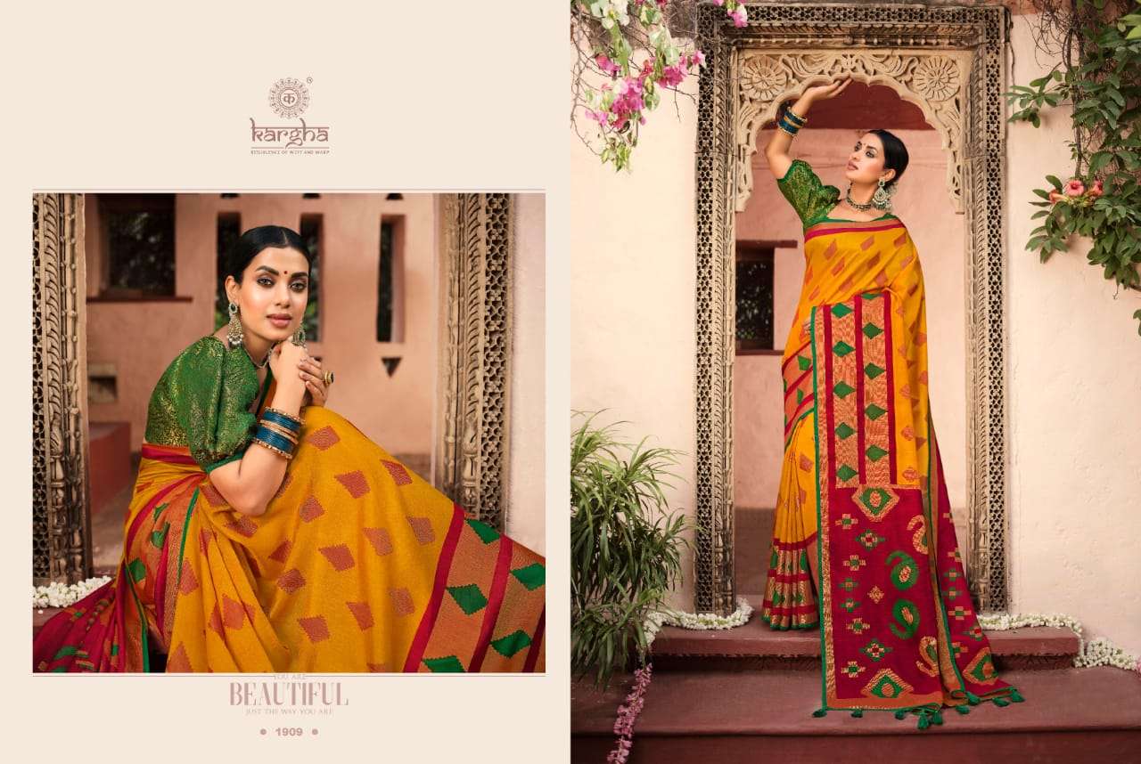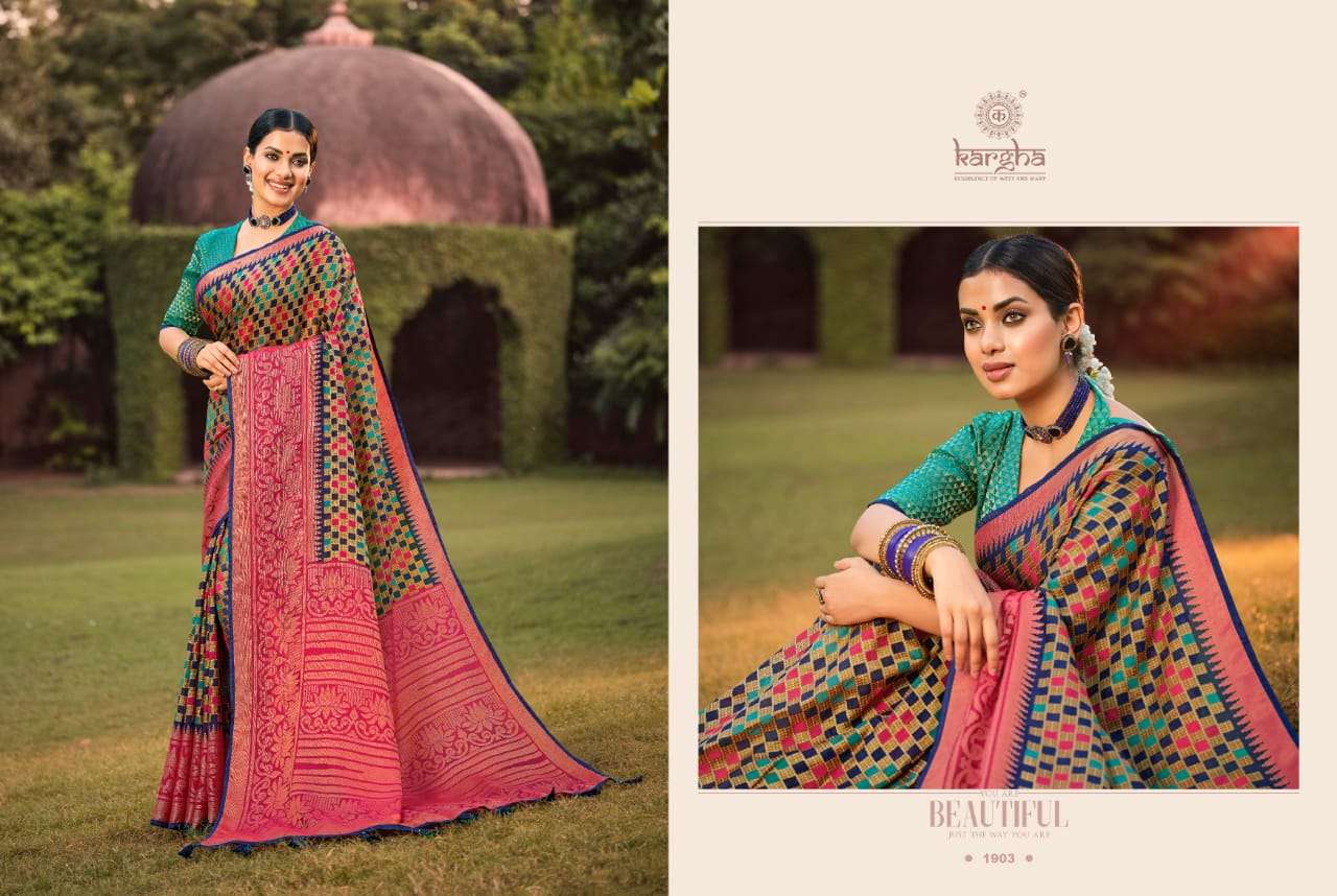 PANKH by PINK LOTUS PRESENTS ITS LATEST DESIGNER SAREE CATALOGUE KARGHA VOL 1 1901-1914 SERIES Silk - Fabrics Cut-6.30 Mtrs 14 PC CATALOG Rate - 1195/-₹ Set to Set Only 5%GST APPLICABLE SET TO SET DELIVERY 5-6 days |