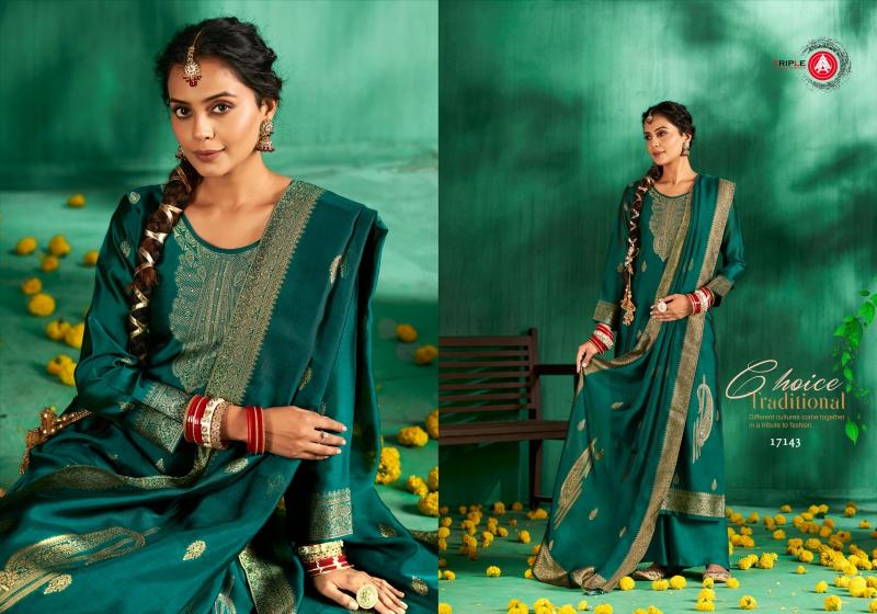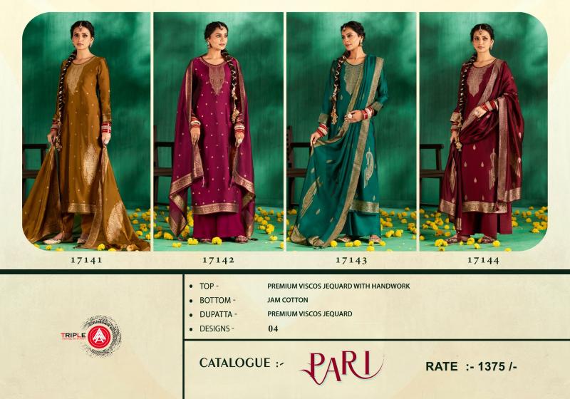 pari by triple a viscose muslin jacquard unstitch party wear suits for women