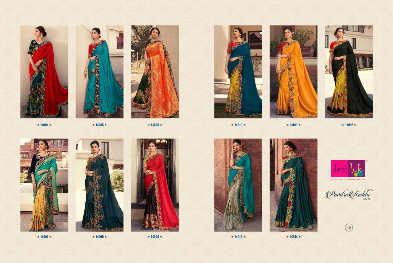 DESI LUK FASHION PAVITRA RISHTA VOL 45 SERIES - 14004-14014 Indian Designer Party Wear Wedding Style Heavy Embroidered Saris Exporter In Surat PCS -11 RATE - 3210/- DELIVERY 4-5 DAYS |