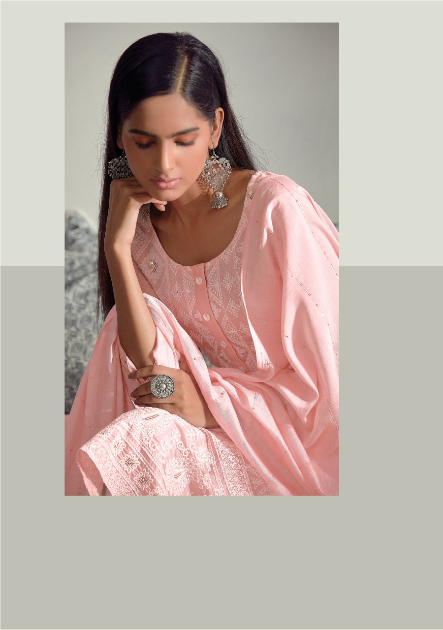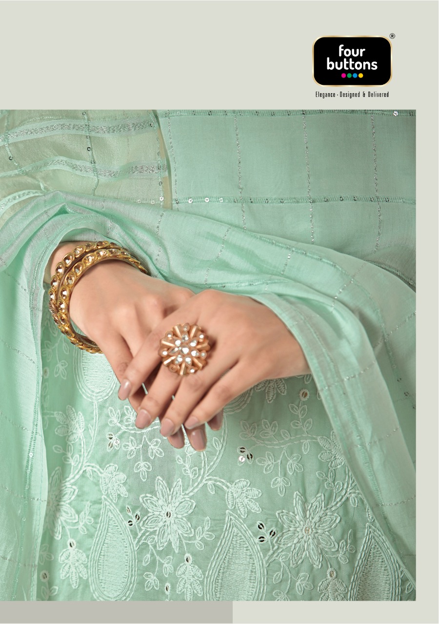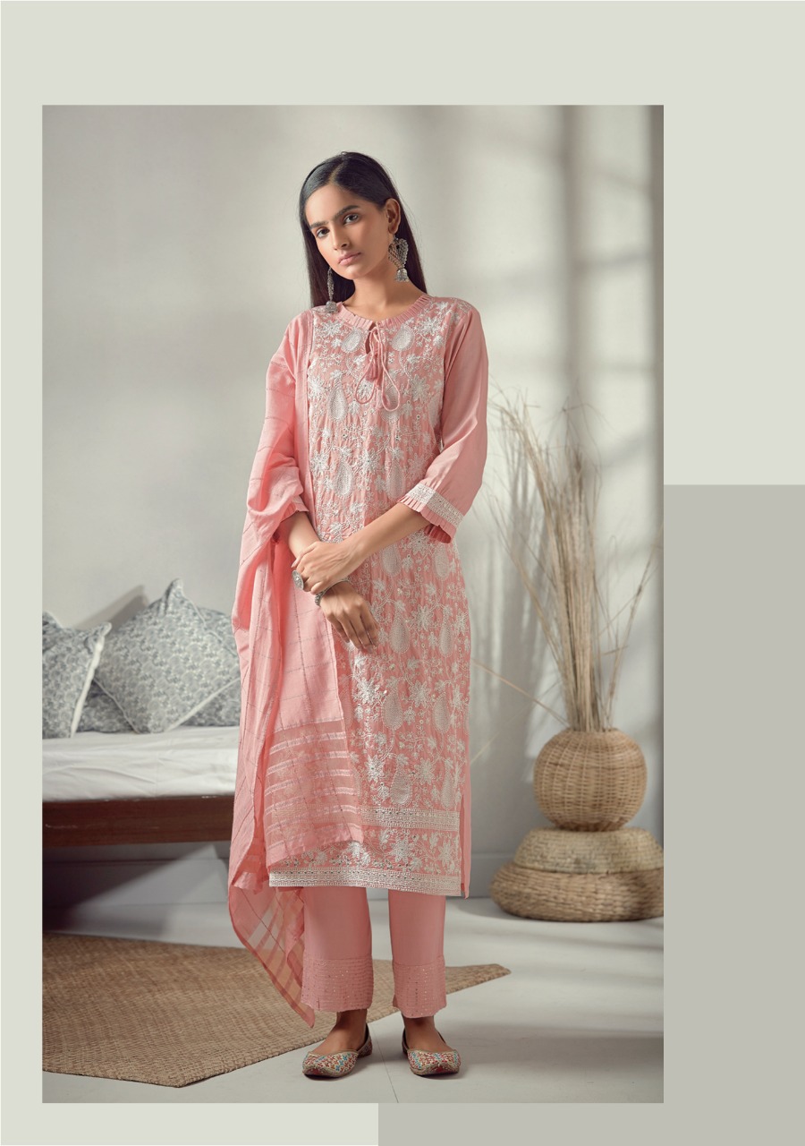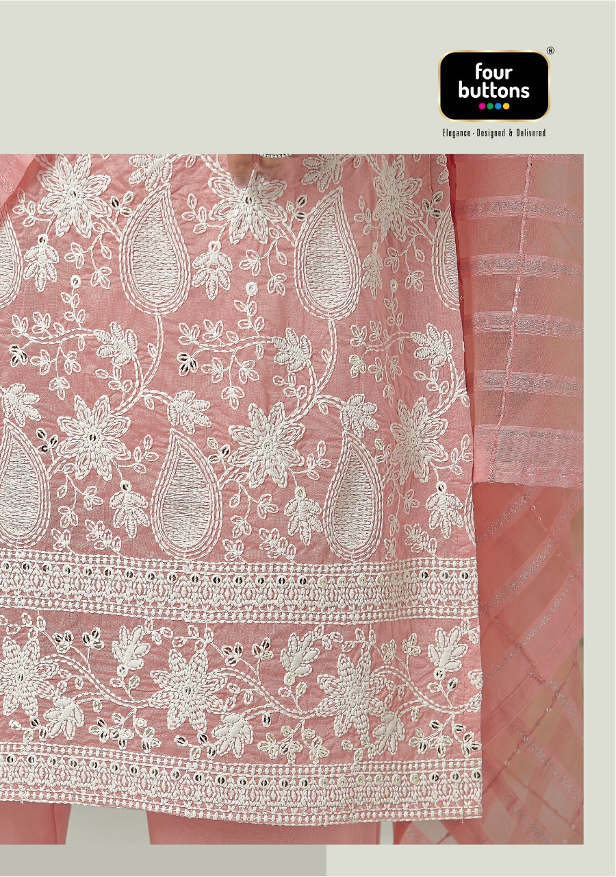 Pearl By Four Buttons Lakhnavi Work On Viscose Chanderi Readymade Salwar Kameez