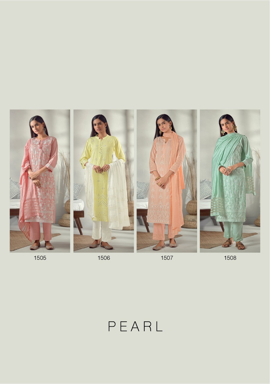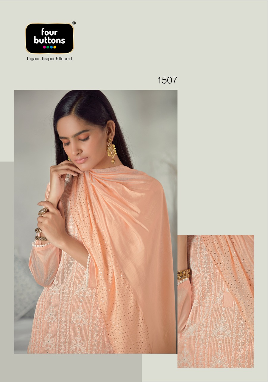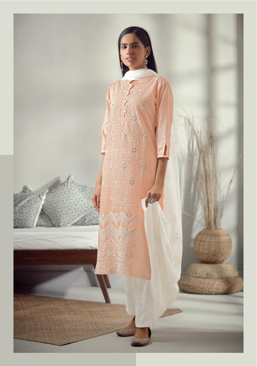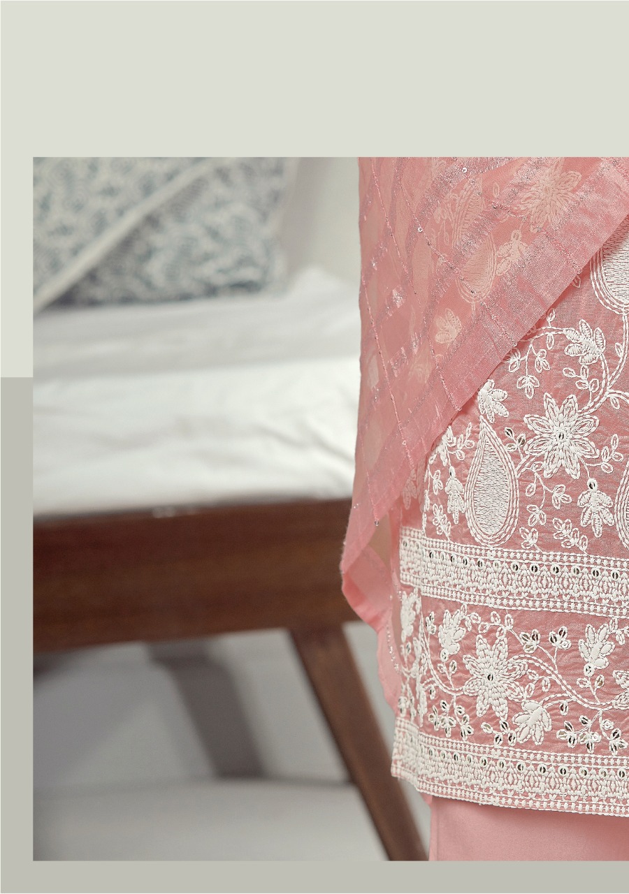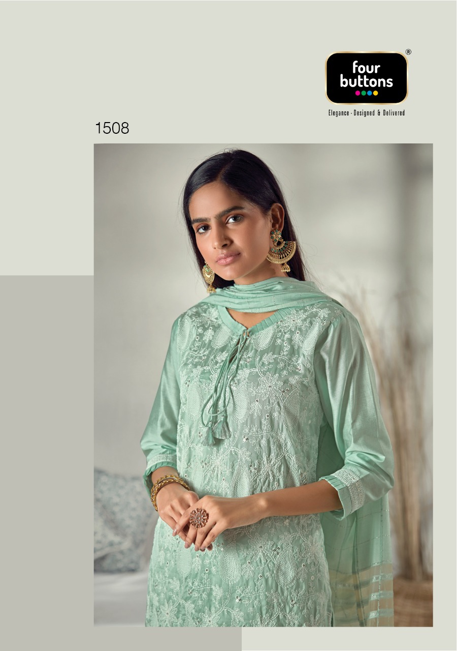 Pearl By Four Buttons Lakhnavi Work On Viscose Chanderi Readymade Salwar Kameez
