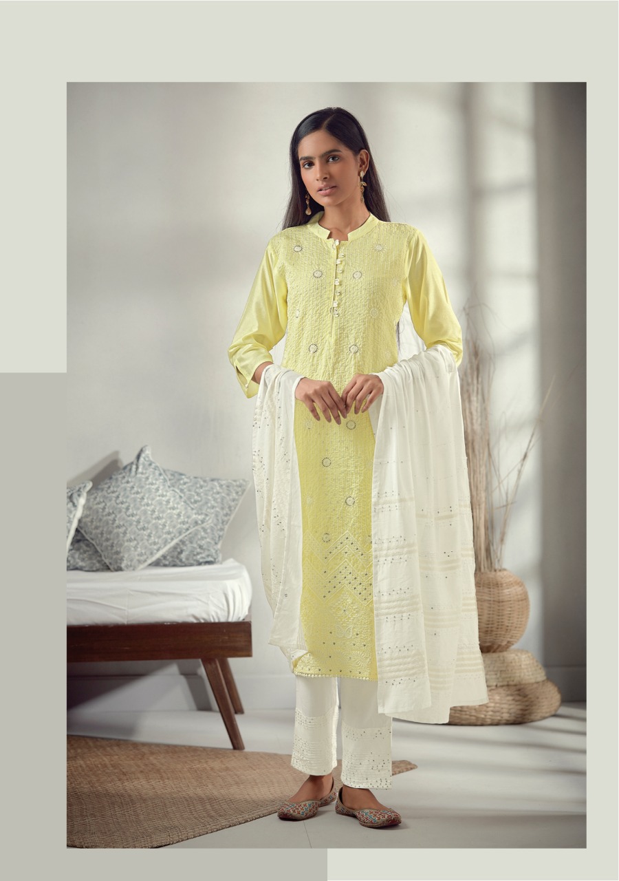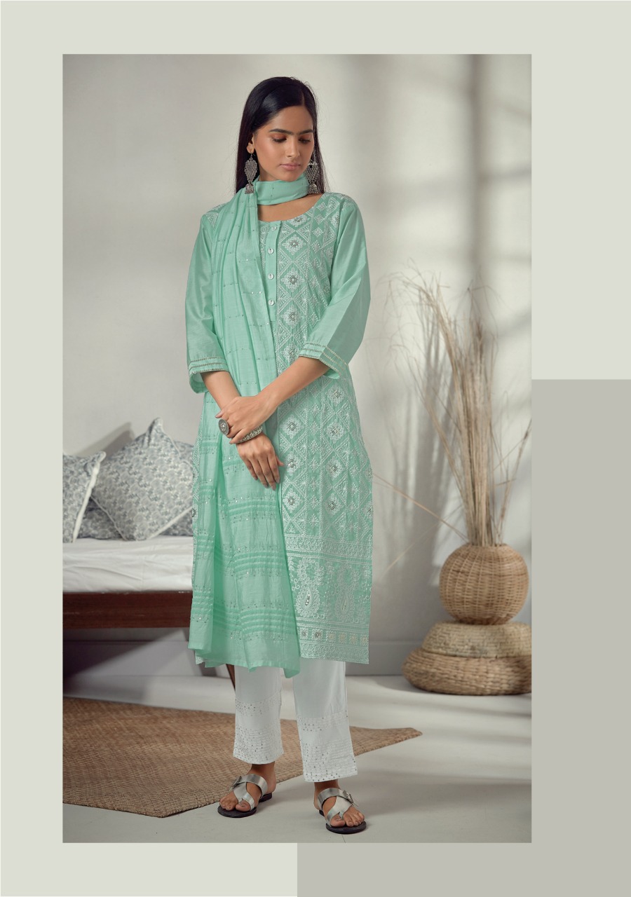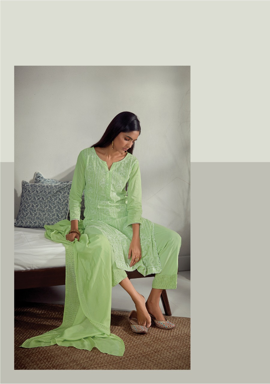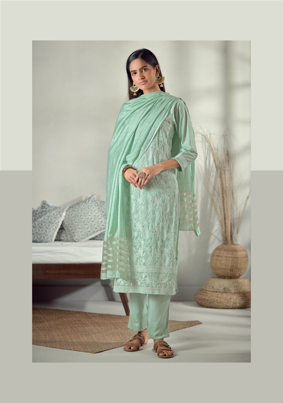 Pearl By Four Buttons Lakhnavi Work On Viscose Chanderi Readymade Salwar Kameez