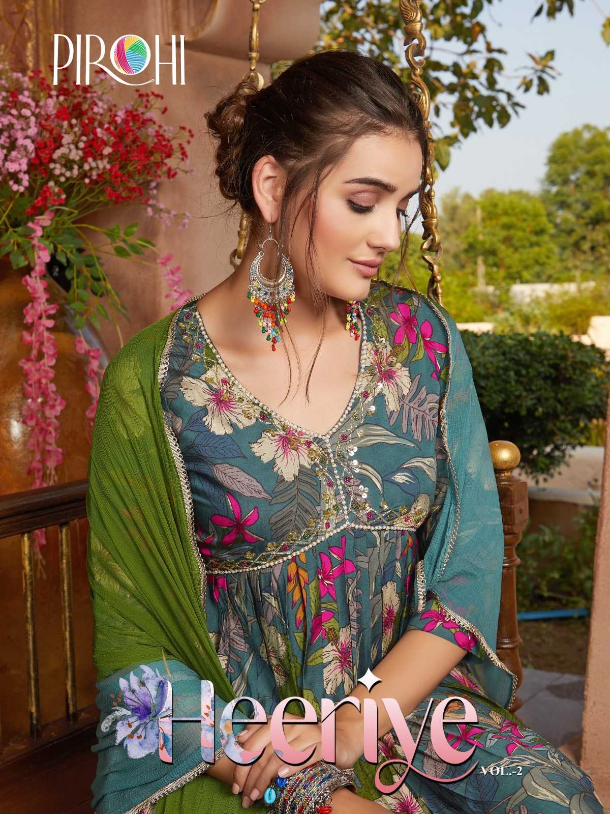 pirohi heeriye vol 2 occasion wear handwork fullstitch alia cut kurti pant dupatta set