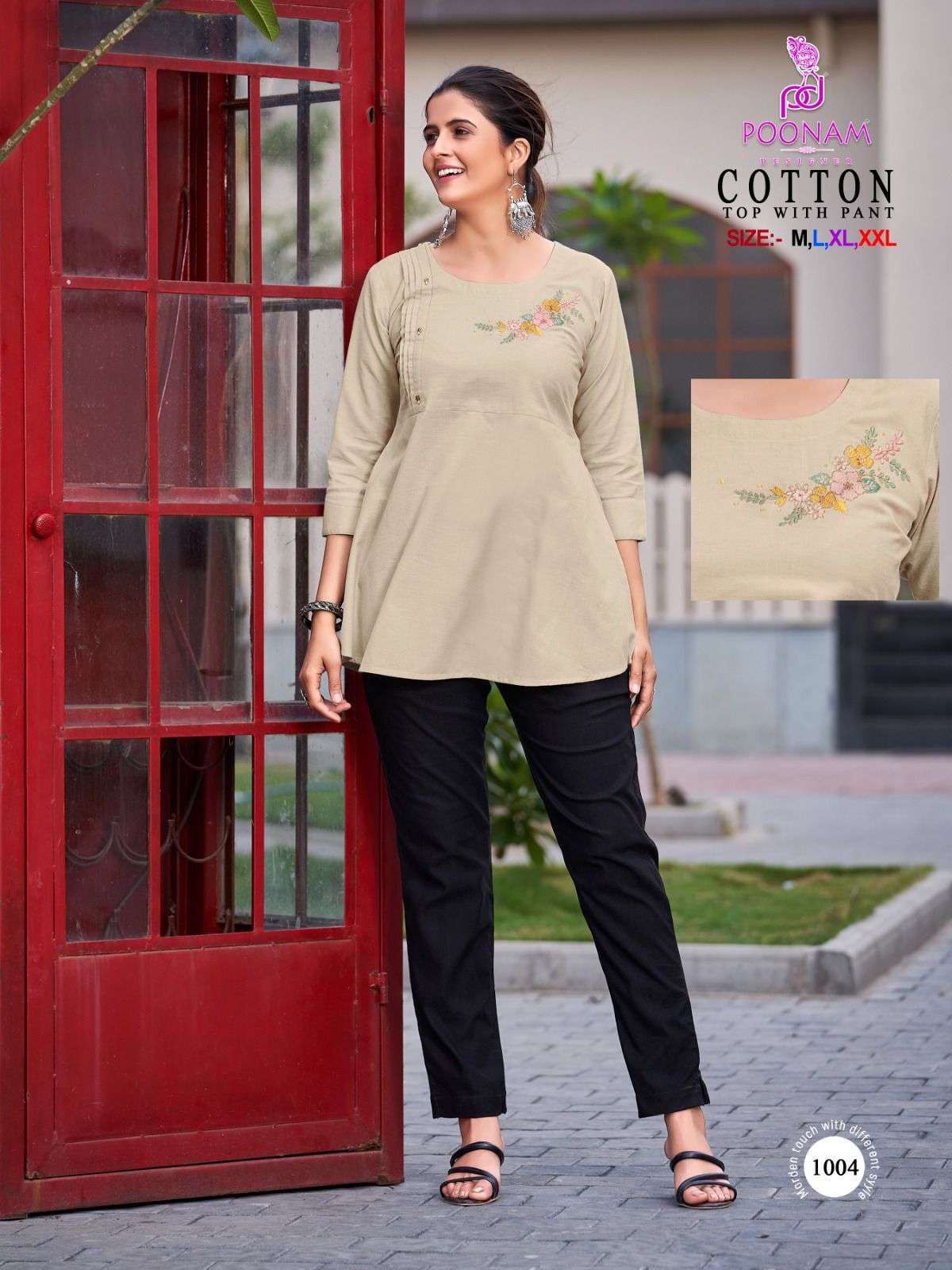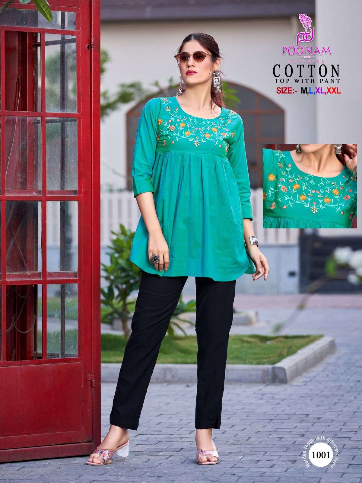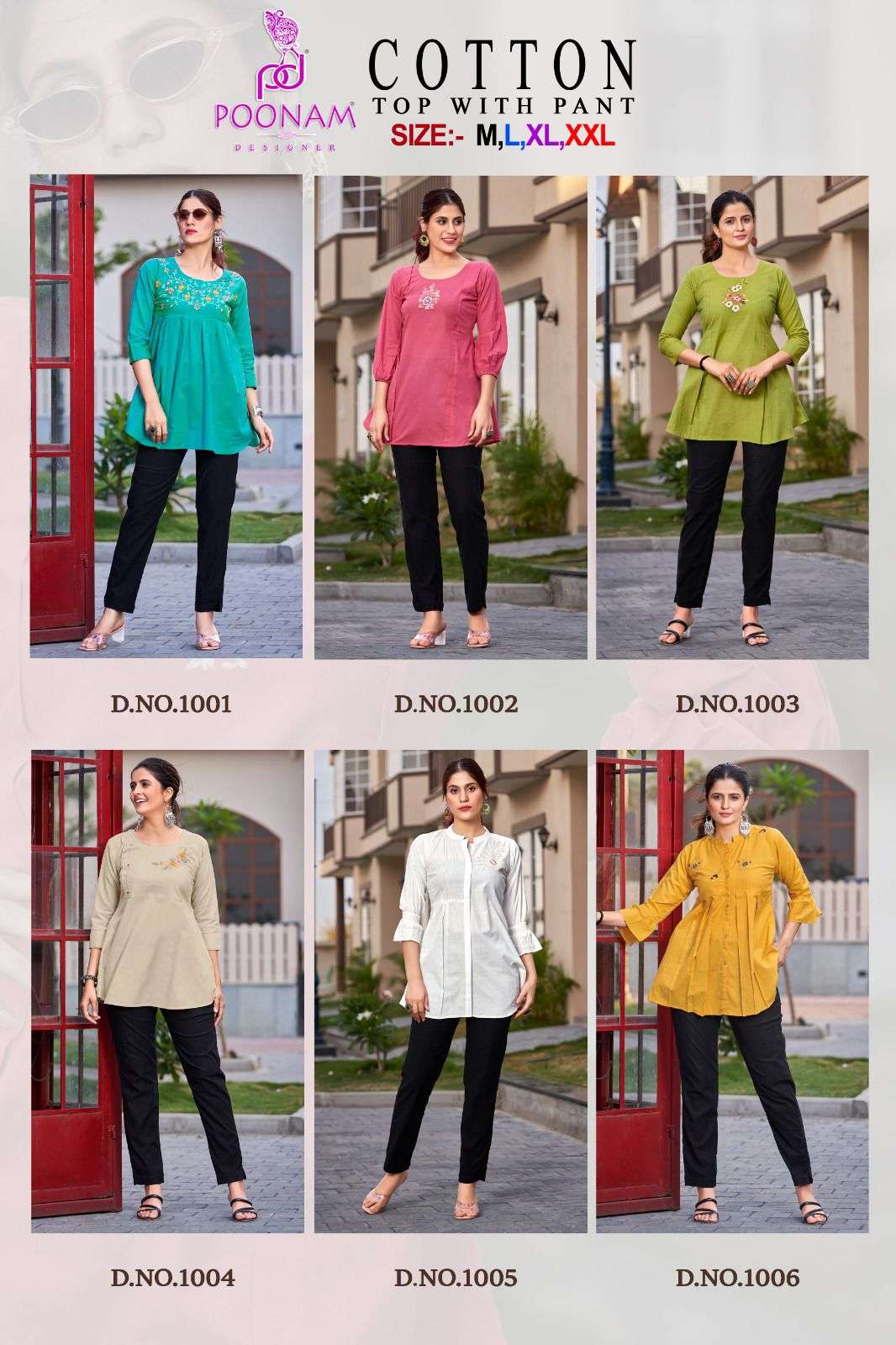 poonam designer cotton 1001-1006 summer special tunic tops with pant