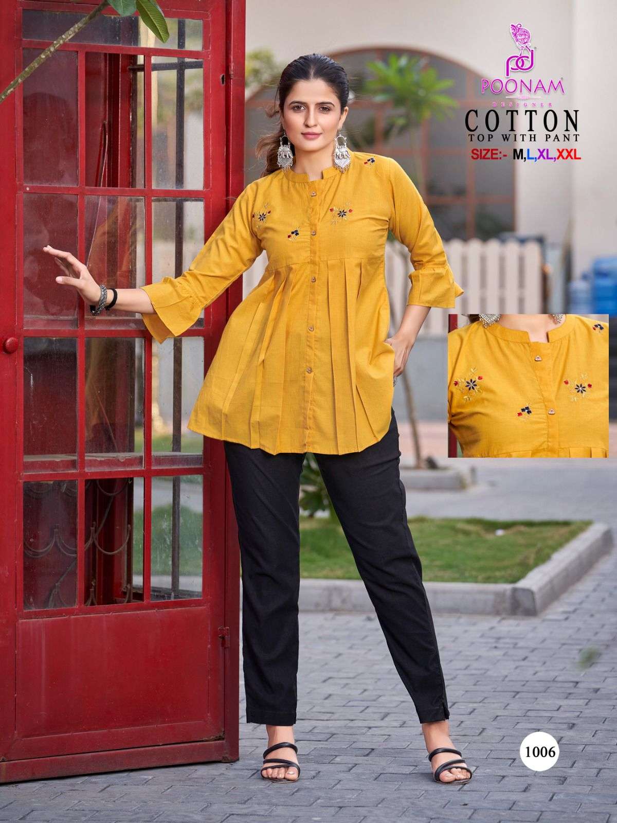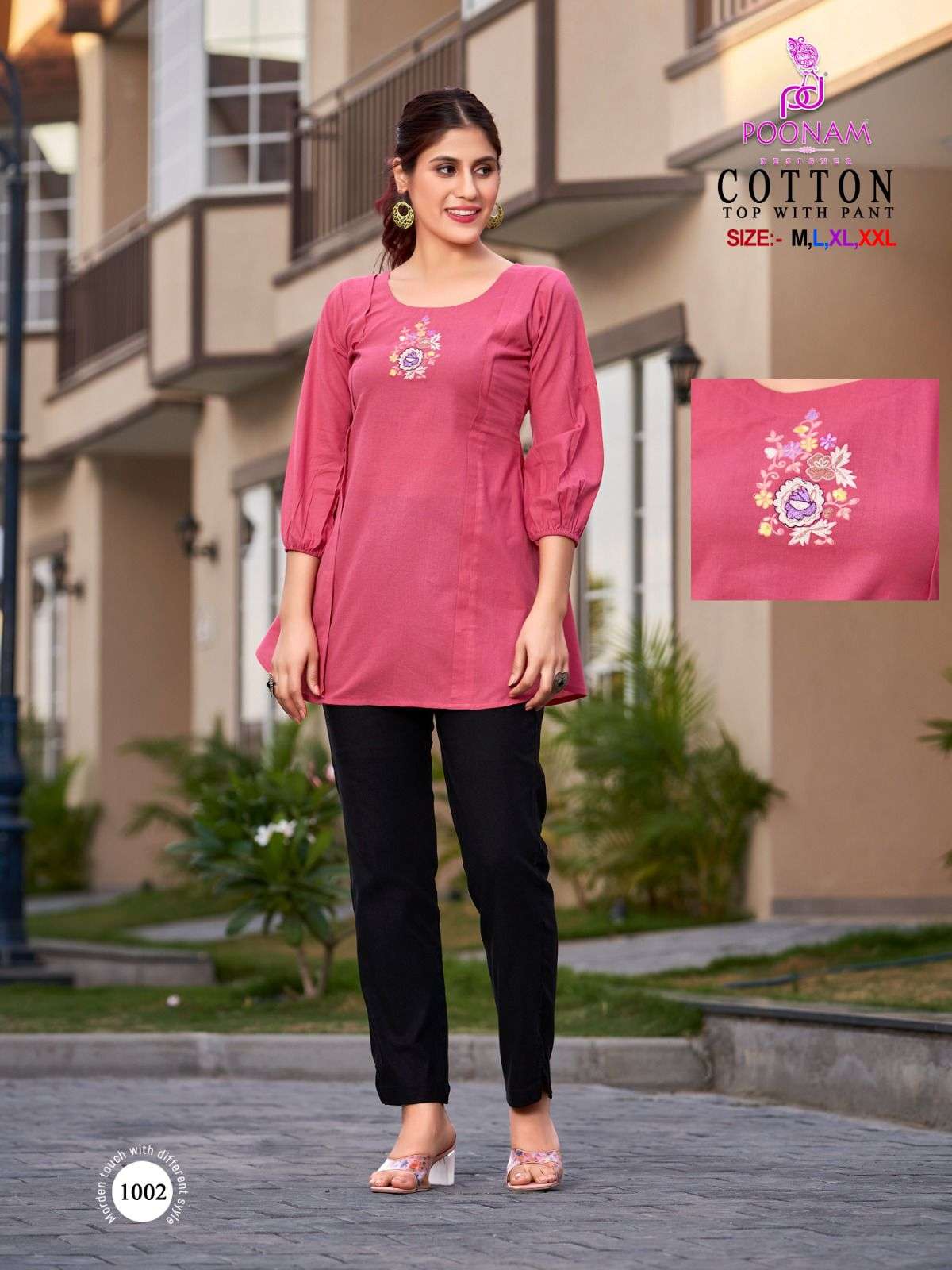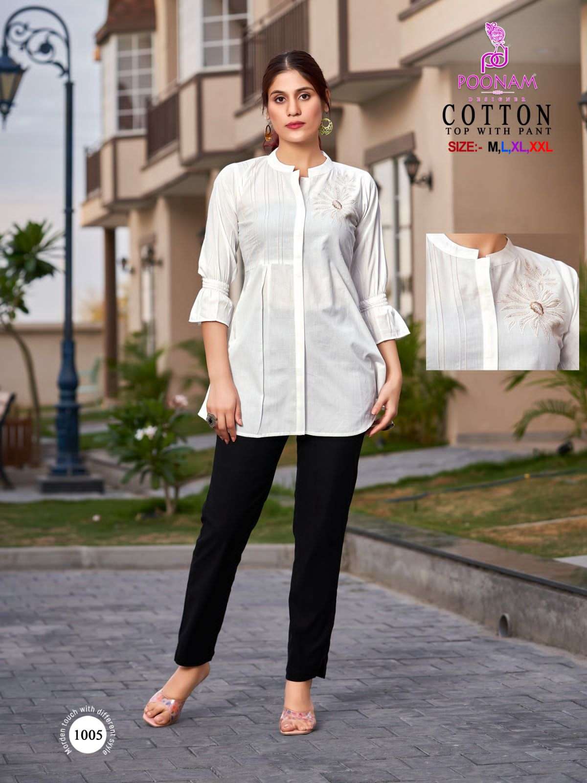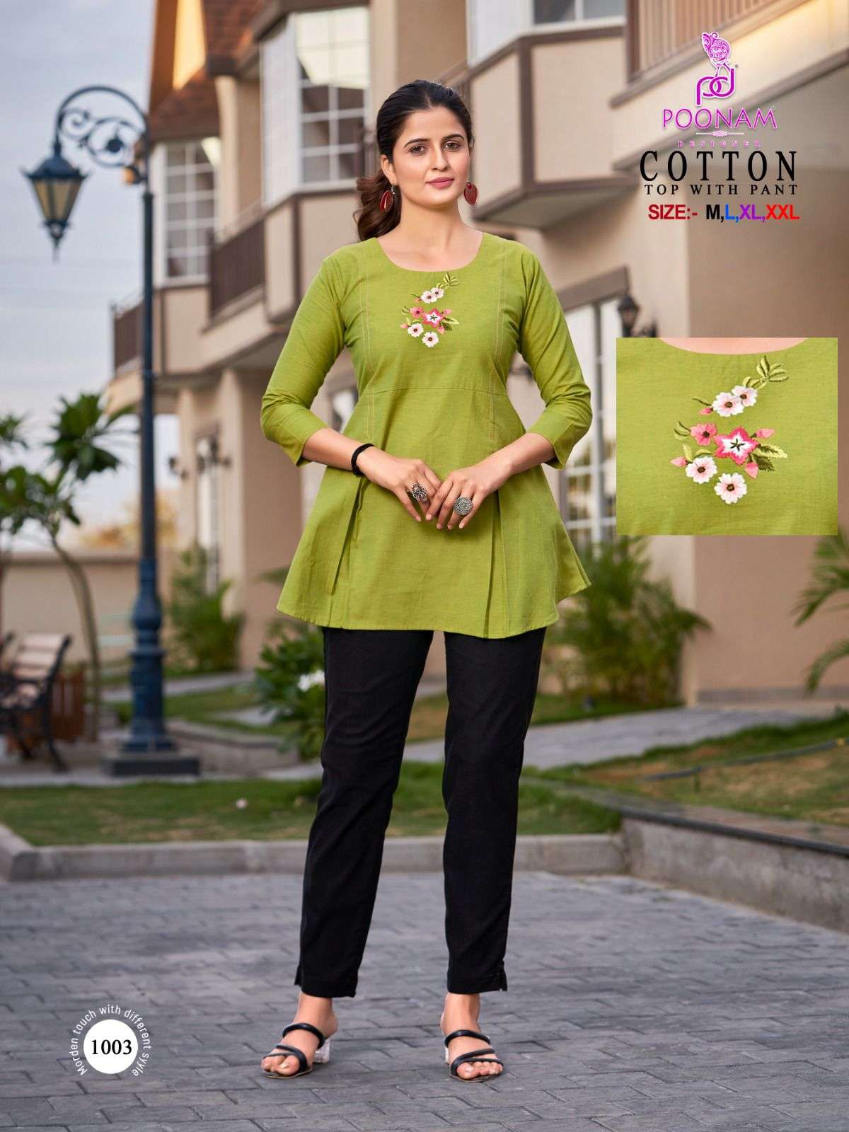 poonam designer cotton 1001-1006 summer special tunic tops with pant