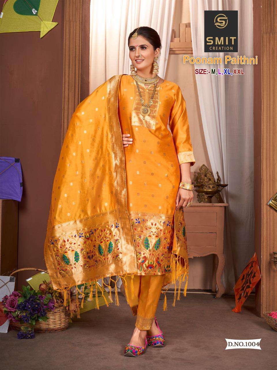 SMIT CREATION®️👩🎨 “POONAM PAITHNI” Top 👗-Pure tapela silk with Bottam- Pure tapeta pant with Duptta- Pure tapeta SIZE:- M Pattern. 3. Pecs. Readymade |