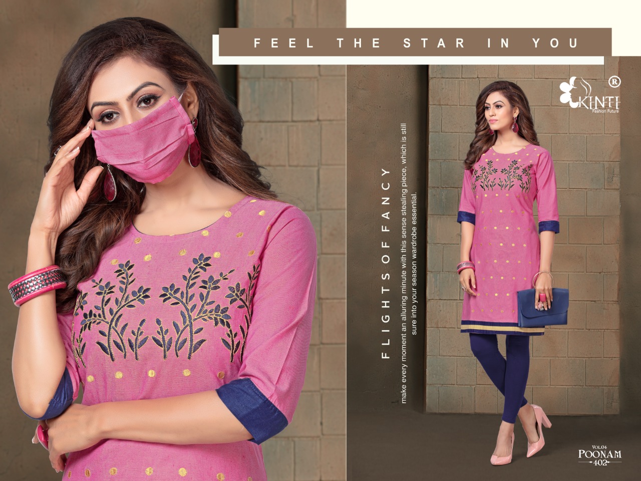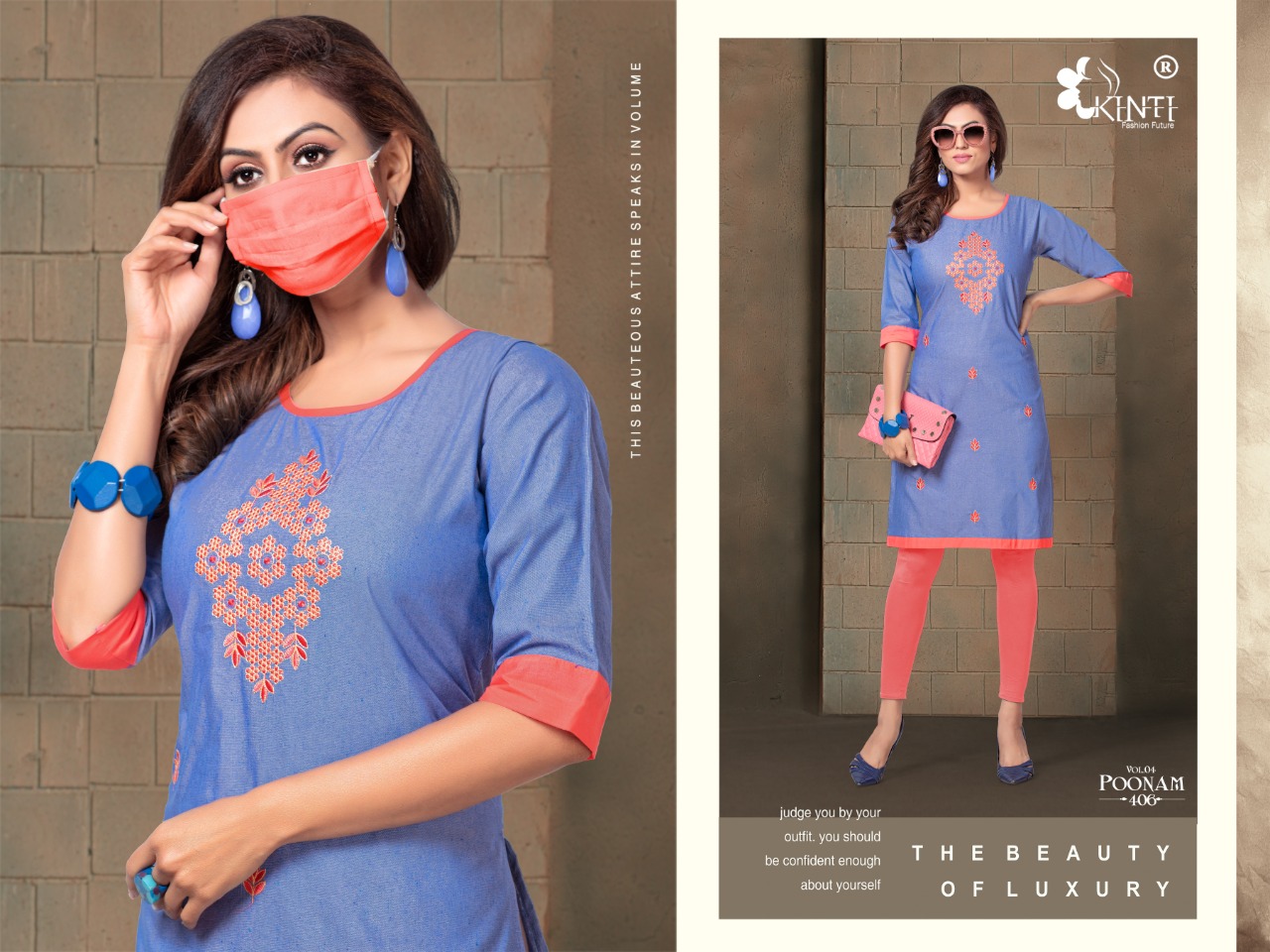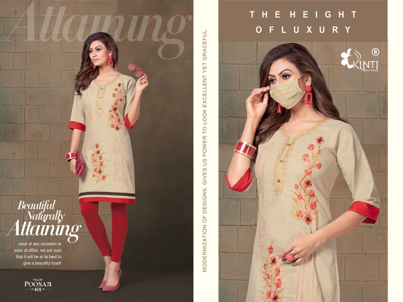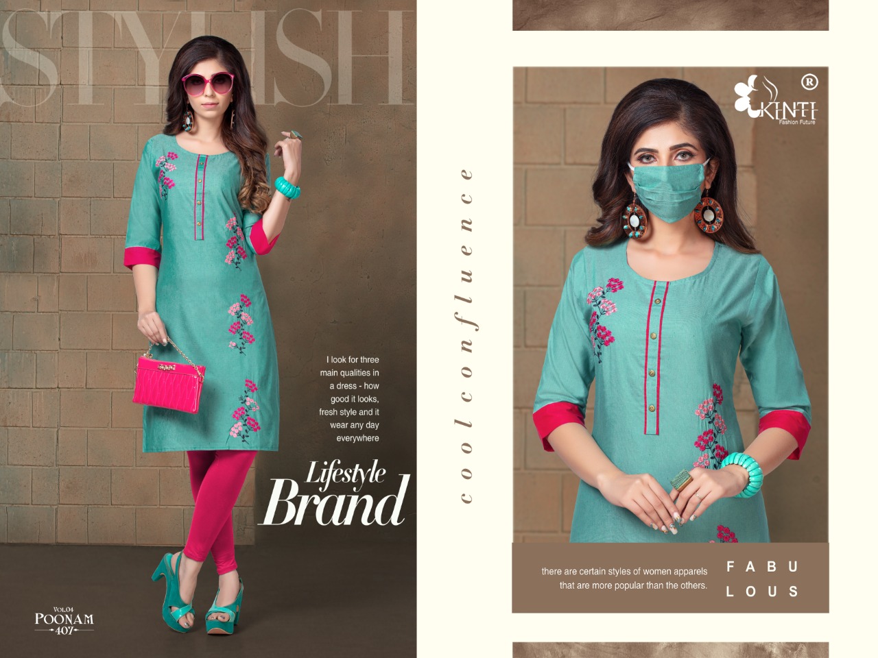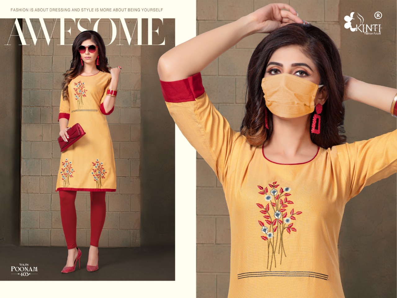 Poonam Vol 4 By Kinti Formal Wear Handloom Cotton Kurti With Mask At Chipest Price In Surat