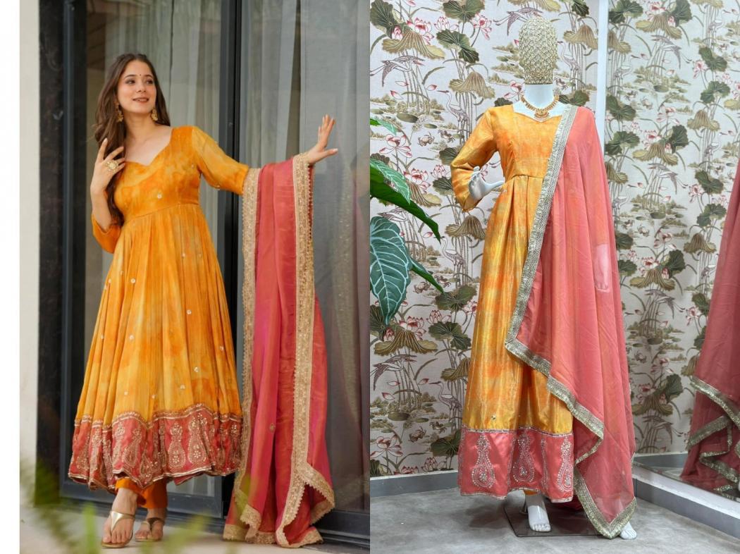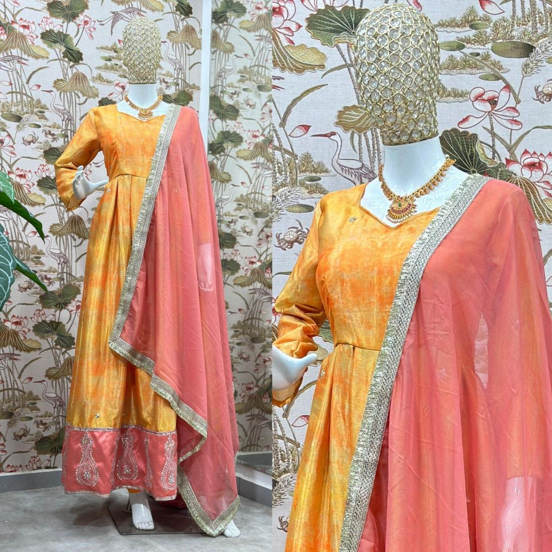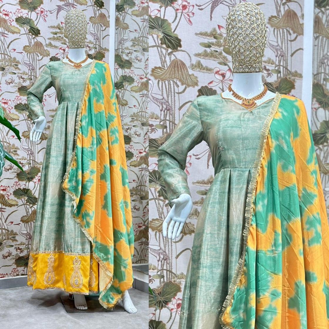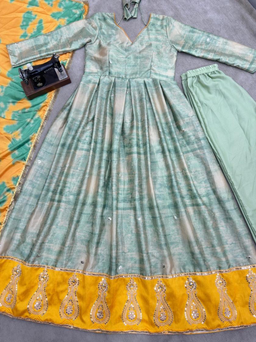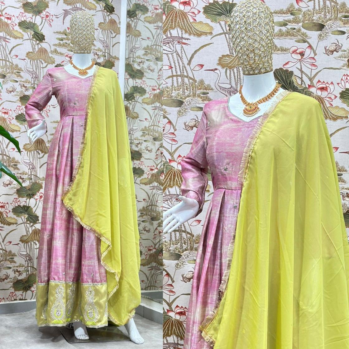 pr 5097 fully stitch chinon silk exclusive gown with dupatta online