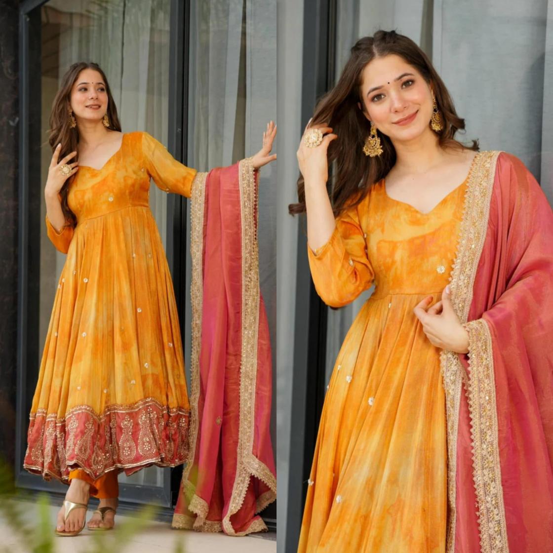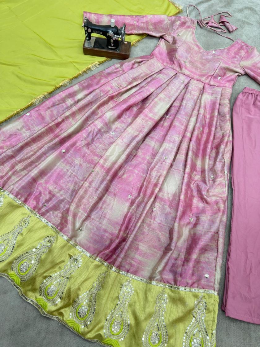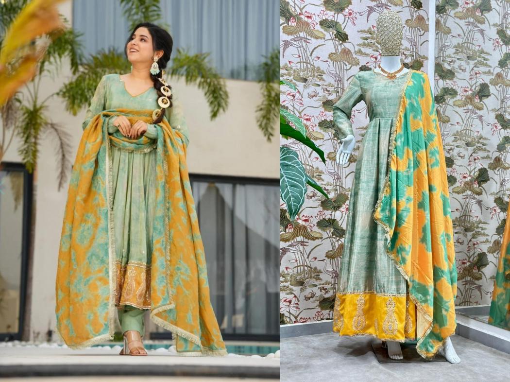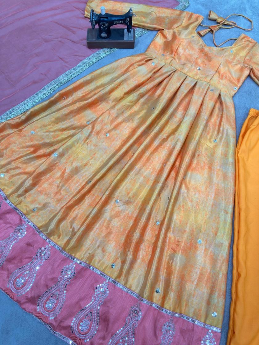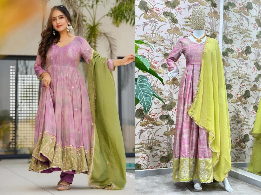pr 5097 fully stitch chinon silk exclusive gown with dupatta online