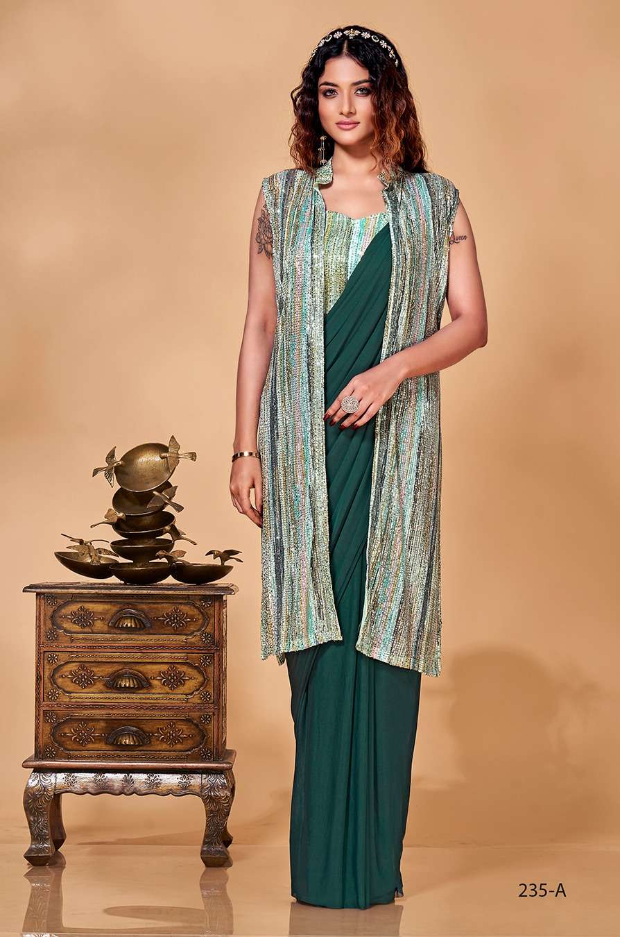 pr a233-a236 designs ready to wear fancy saree with designer blouse and sequin printed jacket