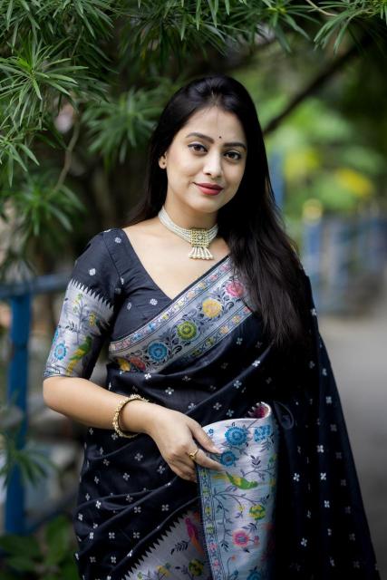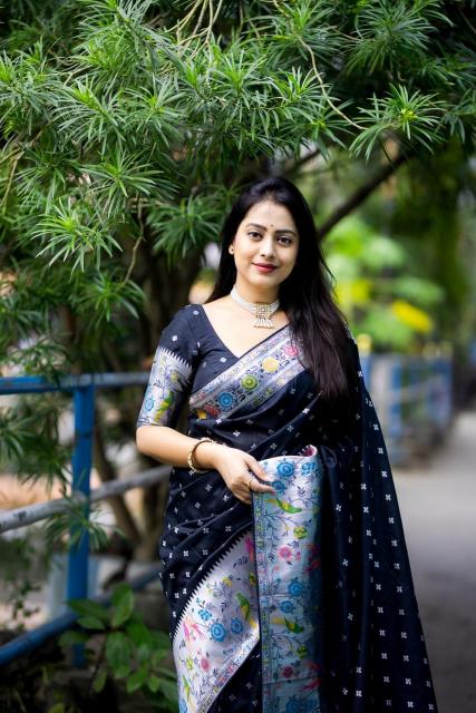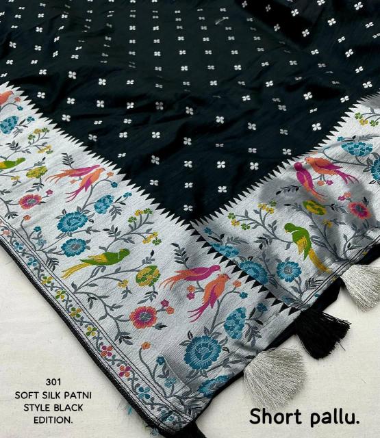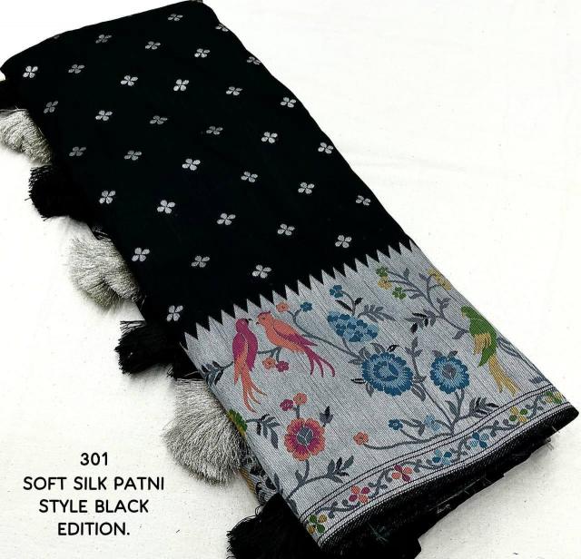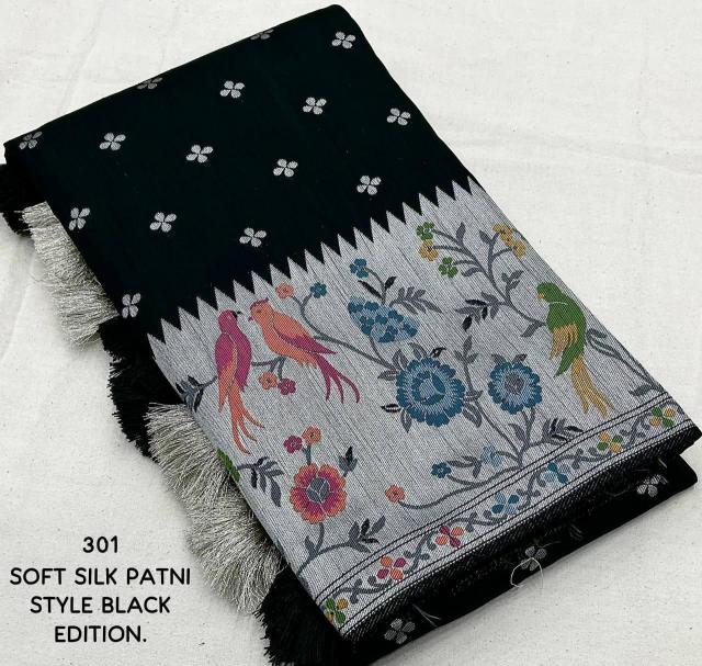 pr kc 301 black banarasi silver zari soft silk patni style unique saree