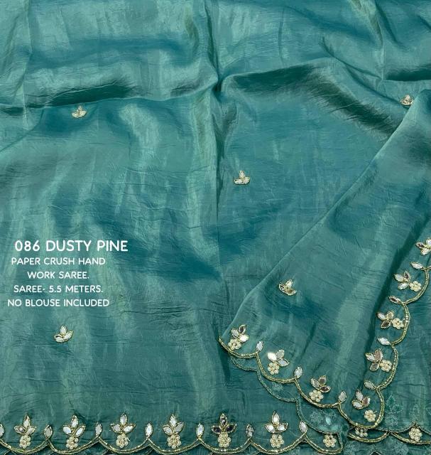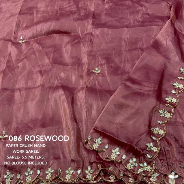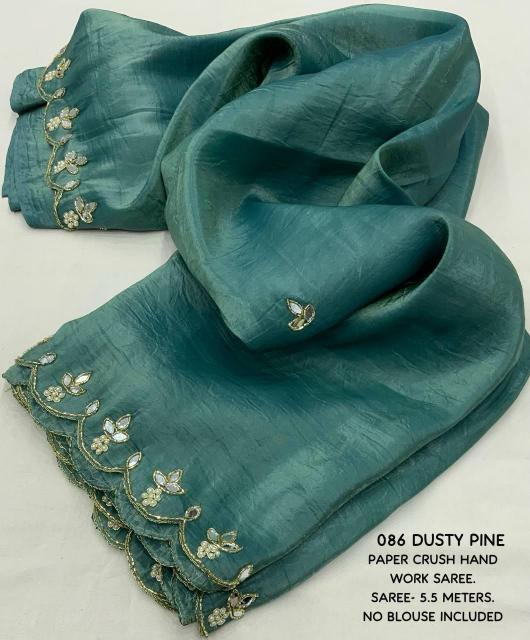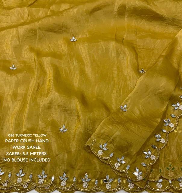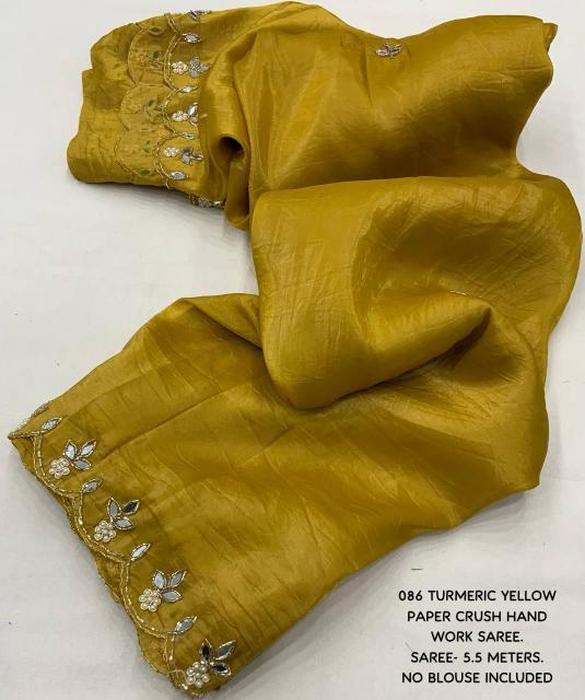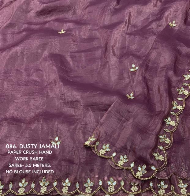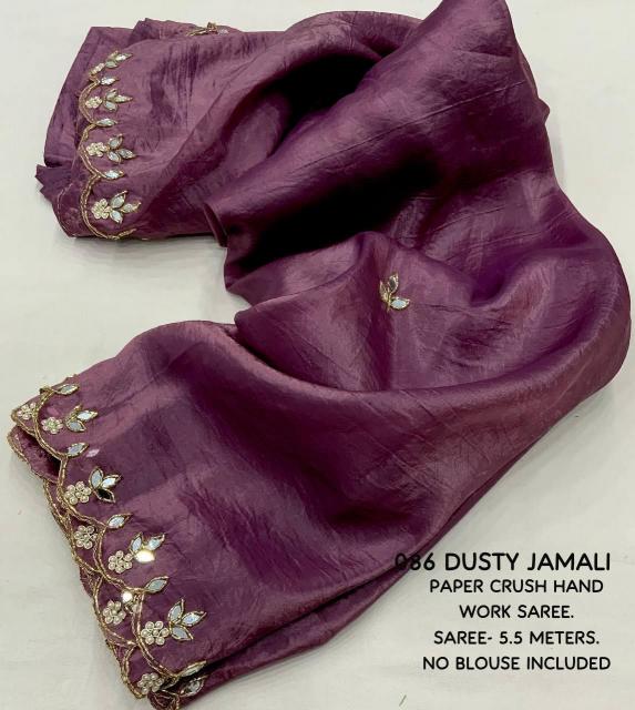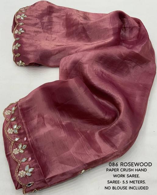 New premium hand work crush saree KC- 086 KC- paper crush. Quality- soft paper silk type woven crush saree. beautiful hand work embroidery c-pallu. No blouse included. Rate - 2050+ship